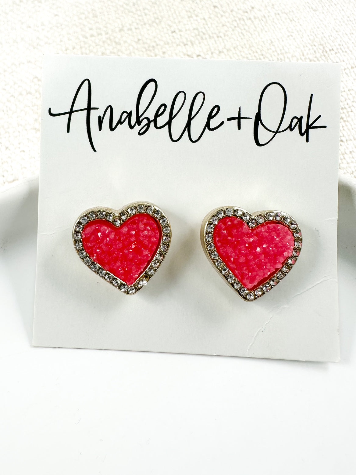 All My Love Studs, hot pink druzy studs, heart-shaped earrings, statement studs, hot pink earrings, glitter earrings, druzy jewelry, romantic earrings, lightweight earrings, trendy stud earrings, elegant heart earrings, Valentine’s Day gift, anniversary gift, birthday gift, bridal jewelry, wedding guest earrings, chic hot pink studs, gift for her, glamorous earrings, party jewelry, holiday gift, bold earrings, sophisticated earrings, versatile earrings, everyday glam earrings, sparkling studs, unique heart jewelry, affordable luxury earrings, curated accessories, romantic gift idea, stylish pink jewelry, delicate heart earrings, statement jewelry, hot pink accessories, vibrant earrings, druzy statement studs, cheerful jewelry.
