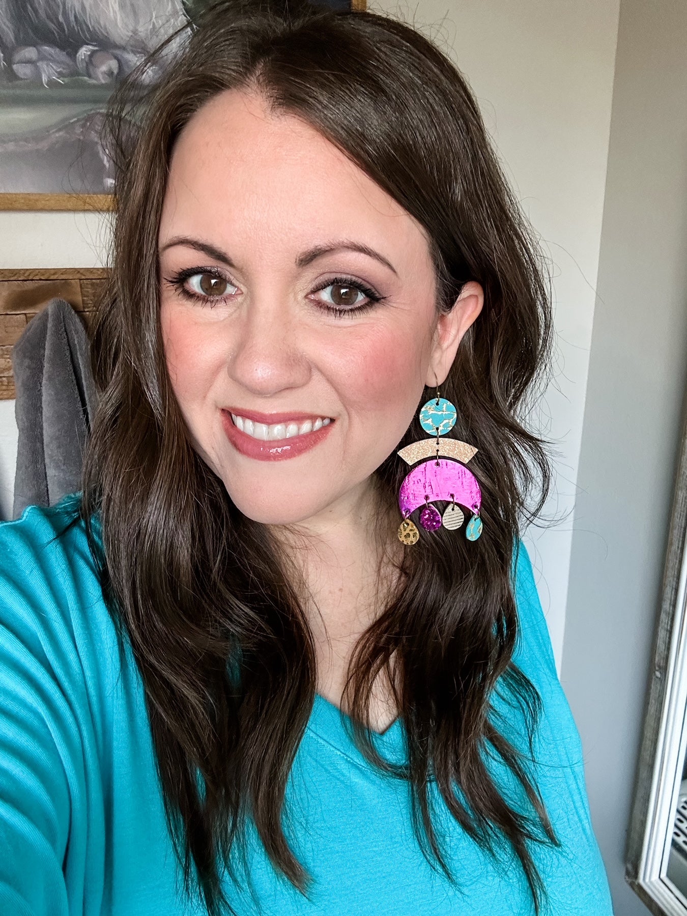 Get ready to stand out with our handmade All the Shiny Things Earrings! Made from cork and genuine leather, these fuchsia, turquoise, and gold statement earrings feature a 3" drop that will add a touch of boldness to any outfit. Make a statement without saying a word!