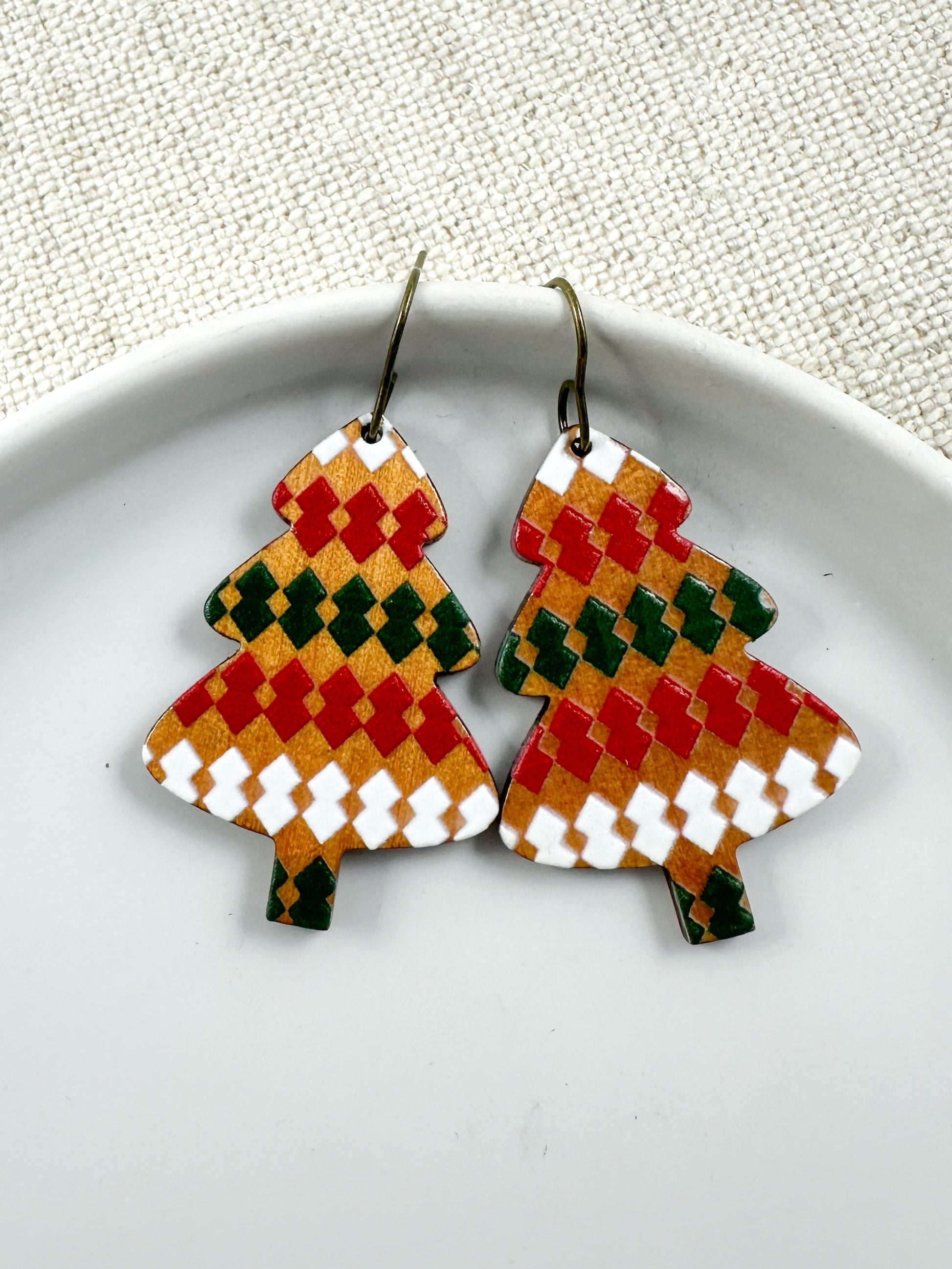 christmas tree earrings, argyle tree earrings, holiday wood earrings, red green white earrings, preppy christmas accessories, lightweight holiday earrings, argyle print earrings, festive tree earrings, 1.5 inch wood earrings, christmas earrings for teachers, cozy holiday outfit earrings, stocking stuffer for her, retro holiday jewelry, preppy christmas gift, cute wooden earrings, plaid tree earrings, holiday earrings small drop, wood cutout earrings christmas, holiday party jewelry, affordable christmas earrings, argyle fashion trend accessories, small holiday earrings for women, neutral christmas jewelry, festive wooden tree earrings, christmas earrings boutique style