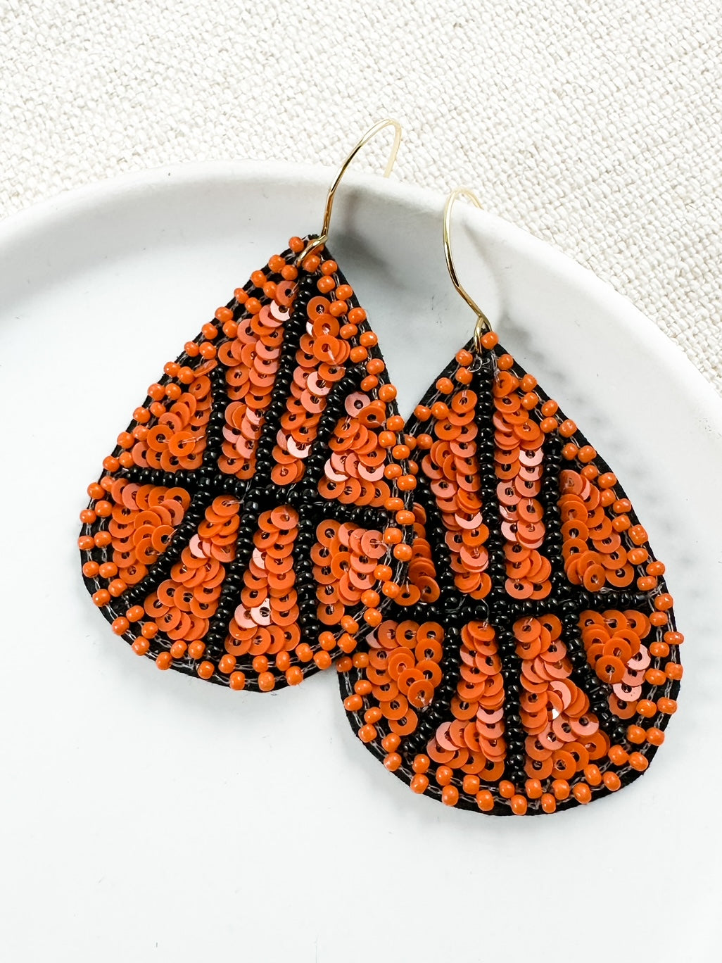 basketball earrings, sequin basketball earrings, orange black earrings, sporty statement earrings, teardrop basketball earrings, handmade basketball earrings, fun sports earrings, gameday earrings, women's basketball jewelry, teacher gift basketball earrings, sequin teardrop earrings, playful sports earrings, bold beaded earrings, statement sports earrings, trendy gameday accessories, basketball mom earrings, fan gear earrings, earrings for basketball fans, hoop earrings for sports lovers, unique coach gift, march madness earrings, basketball themed accessories, trendy beaded earrings, big game earrings, sports fan earrings, beaded teardrop earrings, athletic themed earrings, gameday style earrings, team spirit earrings, fun earrings for sports games, handmade sports jewelry, teen girl basketball gift, unique basketball gift for her, eye-catching sports earrings, sporty glam earrings, earrings for basketball party, girls basketball team gifts, lightweight statement earrings, boutique basketball accessories, sporty chic earrings, earrings for team moms, youth basketball earrings, handmade fan gear, spirited earrings for women, sequined basketball earrings