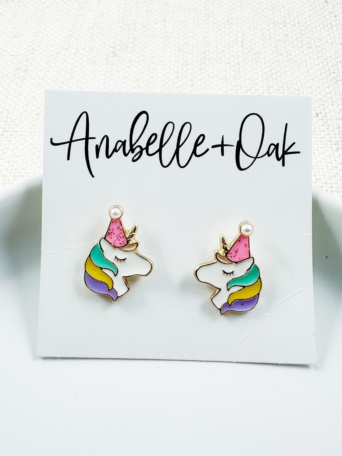 unicorn birthday earrings, kids unicorn stud earrings, pastel unicorn jewelry, rainbow unicorn earrings, birthday party earrings, enamel unicorn studs, cute unicorn earrings, girls birthday gift, magical unicorn earrings, colorful stud earrings, whimsical kids earrings, playful party jewelry, birthday gift for girls, girls unicorn accessories, fun enamel earrings, small stud earrings for kids, pastel rainbow earrings, kids party favor earrings, gift for unicorn lover, toddler earrings with backs, age 3+ earrings, birthday accessories for girls, fantasy themed earrings, unicorn themed gift idea, boutique kids earrings, mini magical earrings, gold tone unicorn studs, earrings for little girls, girls jewelry under $15