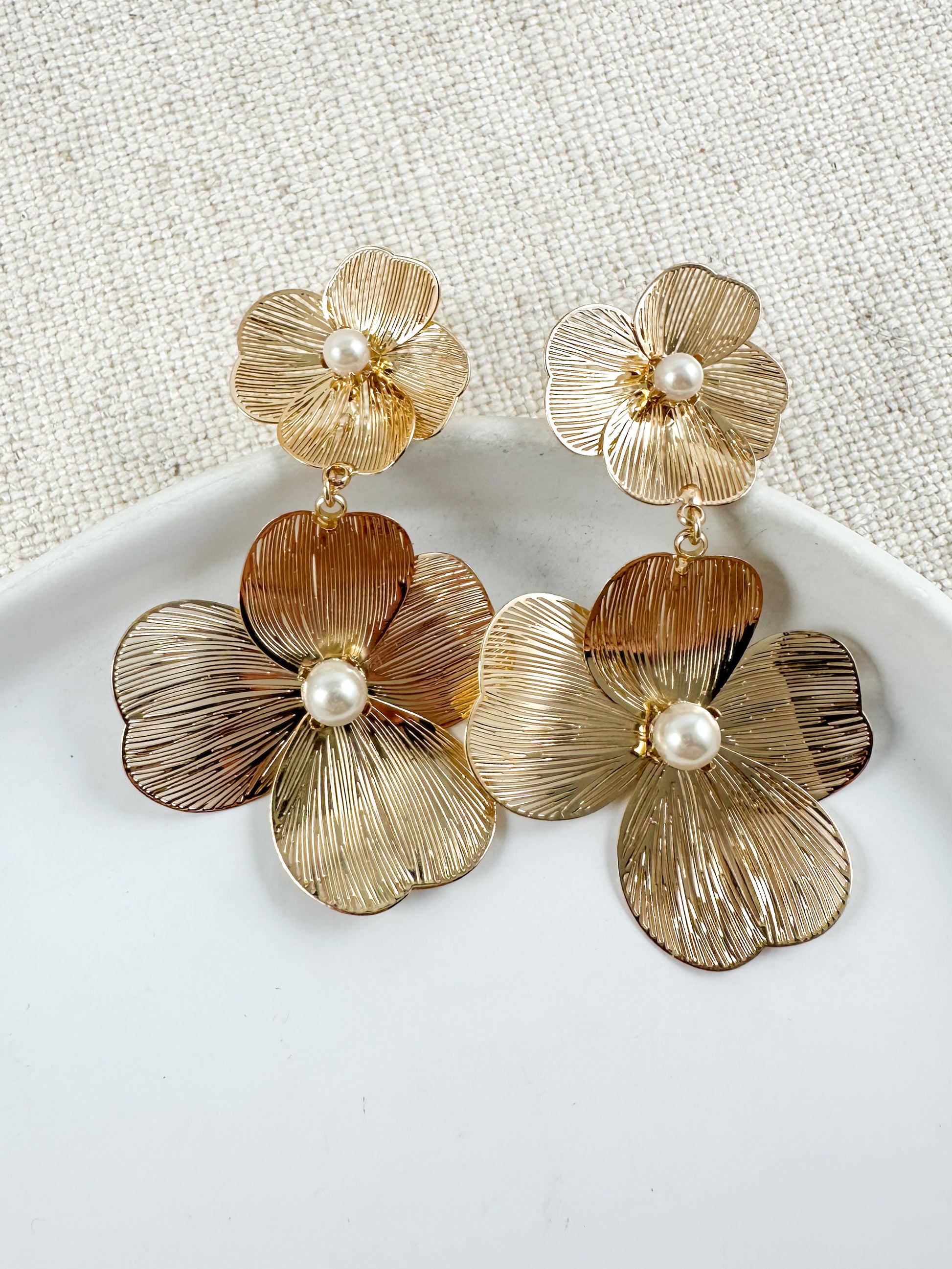 gold floral earrings, pearl flower earrings, statement gold earrings, lightweight statement earrings, gold drop earrings, 2 inch gold earrings, matte gold floral jewelry, gold pearl earrings, wedding guest earrings, bridesmaid earrings gold, everyday floral earrings, dressy pearl earrings, spring floral earrings, summer statement earrings, fall wedding earrings, holiday party earrings, chic gold earrings for women, trendy floral statement earrings, garden party jewelry, lightweight pearl earrings, romantic gold earrings, anniversary gift earrings, mother’s day earrings, elegant flower earrings, classic gold pearl studs alternative