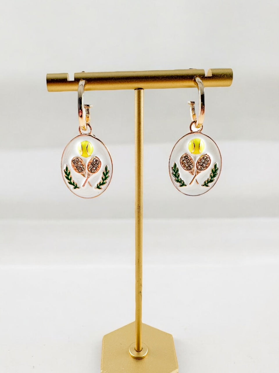 tennis earrings for women, gold hoop earrings with charms, removable tennis charm earrings, 2 in 1 hoop earrings, lightweight gold hoops, center court hoops, tennis racket and ball earrings, sporty chic earrings, versatile hoop earrings, everyday gold hoop earrings, game day tennis jewelry, trendy gold hoops 1.5 inch, convertible hoop earrings, womenās tennis accessories, gift for tennis player, match day earrings, classic gold hoop earrings, athletic inspired jewelry, tennis charm hoop earrings, stylish tennis mom jewelry, removable charm earrings for women, double duty hoop earrings, tennis lover gift jewelry, modern tennis earrings