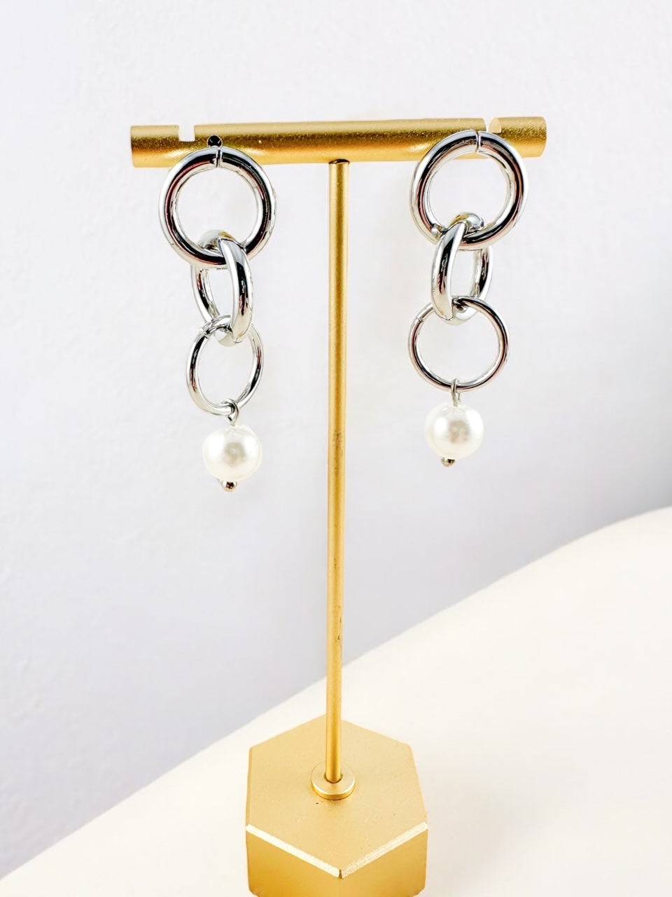 silver link earrings, pearl drop earrings, silver dangle earrings, chain and pearl earrings, lightweight statement earrings, modern silver earrings, trending drop earrings, minimalist fashion jewelry, silver jewelry for women, boutique earrings under 25, chic silver accessories, edgy pearl earrings, silver fashion earrings, unique boutique earrings, elegant drop earrings, mixed material earrings, linked silver earrings, silver chain earrings, silver and white earrings, holiday party earrings, wedding guest earrings, date night jewelry, girls night out earrings, anniversary gift for her, birthday gift for wife, graduation gift earrings, bridesmaid jewelry idea, office to evening earrings, summer statement earrings, everyday fashion earrings, cocktail attire earrings, dressy casual earrings, gift for fashion lover, silver earrings with pearl, affordable trendy earrings, stylish silver accessories, fashion earrings for women, women’s statement earrings