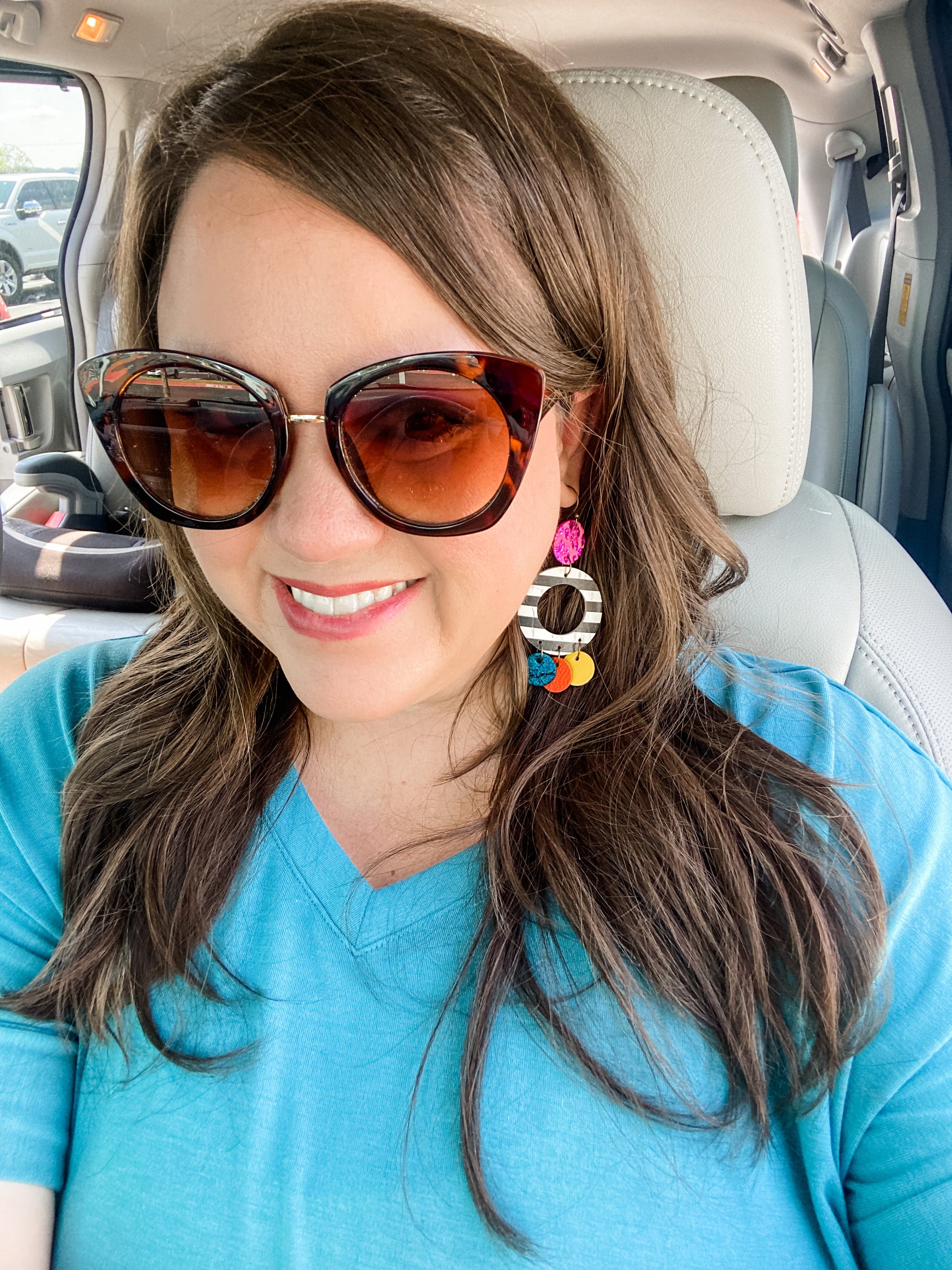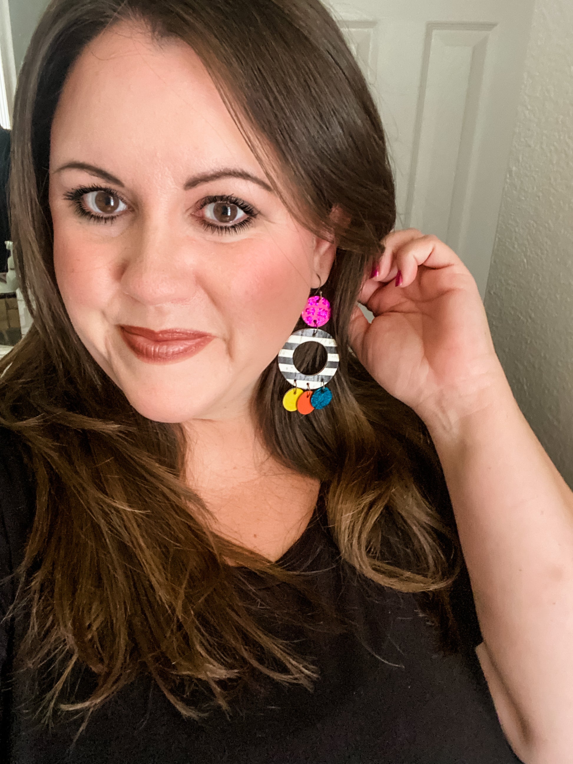 If you love big earrings, then you need these in your life!! These colorful chandelier statement earrings are showstoppers! They are light as a feather and so easy to wear. They go with everything and dress up or down very easily.