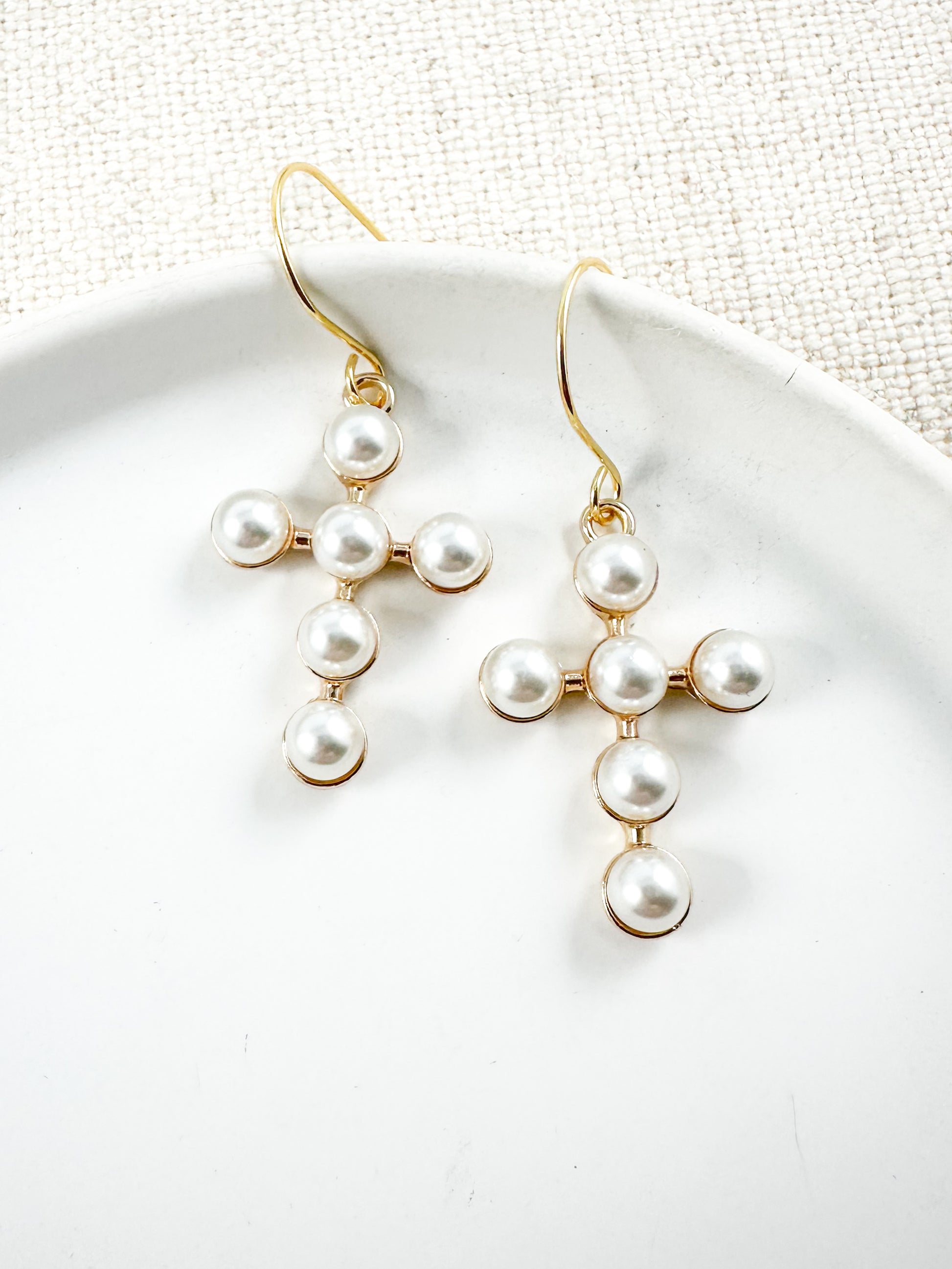 pearl cross earrings, gold drop earrings, dangle cross earrings, faith-based jewelry, Christian earrings for women, trendy pearl earrings, dainty cross earrings, modern religious jewelry, statement earrings with pearls, minimalist faith earrings, Easter jewelry for women, Sunday church earrings, women's baptism gift, confirmation gift idea, elegant pearl dangle earrings, Christian fashion accessories, inspirational jewelry gifts, everyday faith earrings, spiritual jewelry for her, gold and pearl earrings, chic Easter outfit accessories, cross earrings gold and pearl, modern Christian style, delicate drop earrings, timeless religious jewelry, pearl jewelry for spring, meaningful gift for women, subtle faith jewelry, trending faith accessories, layered jewelry looks, feminine church outfit accessories