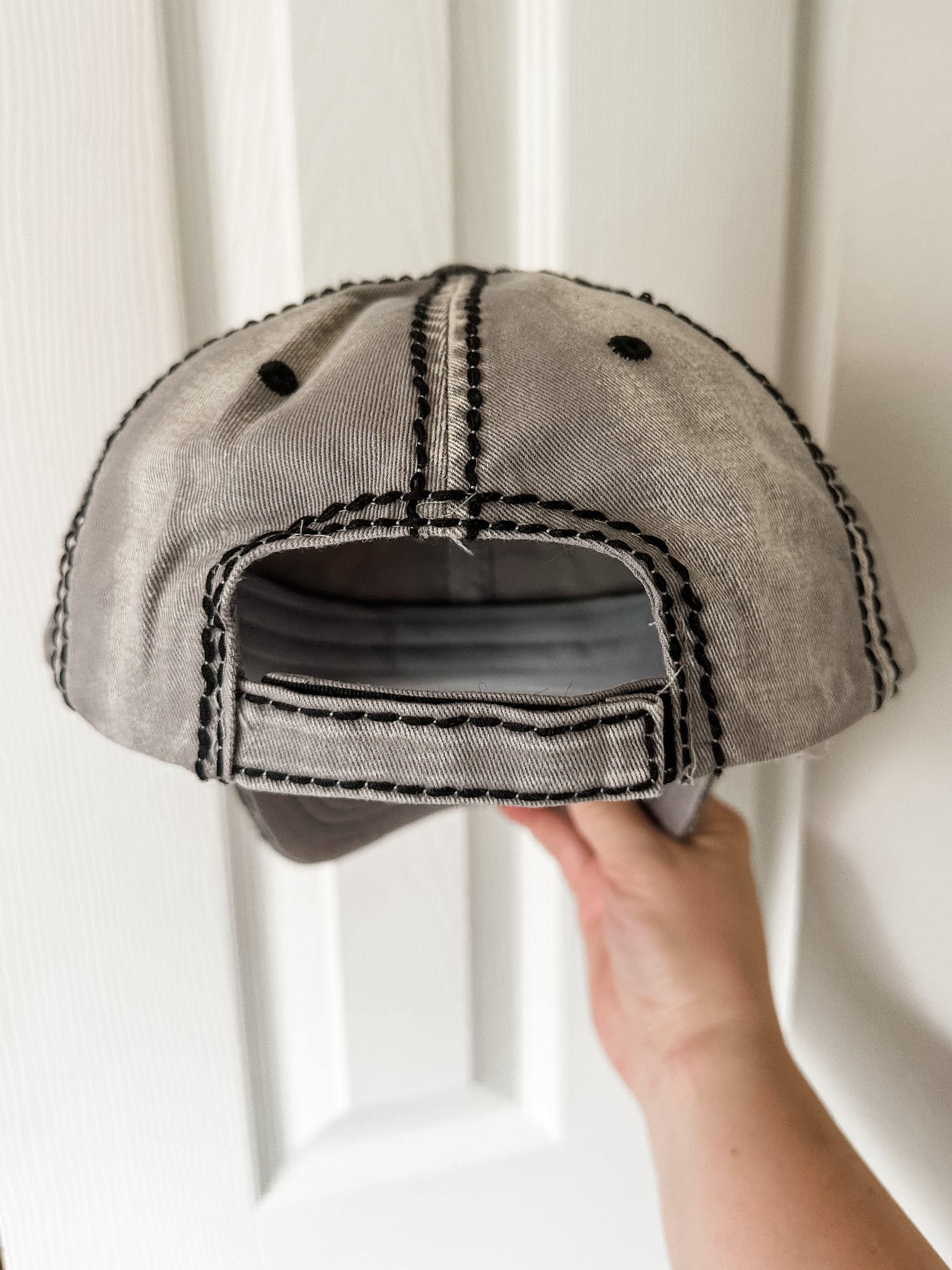 The Crystal Ridge Hat, Gray is proof that you can have a comfy, throw-on hat and still look put-together. The perfectly broken-in gray base feels like your favorite cap you’ve had for years, but that oversized crystal cluster up front? That’s the magic that makes a “leggings and a tee” day look like you actually tried.