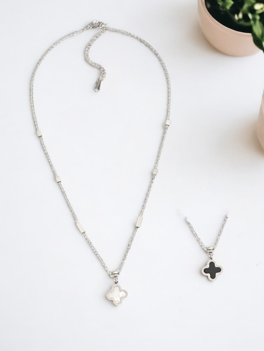 This necklace is reversible! Wear it with a black stone on 1 side and a white stone on the other.