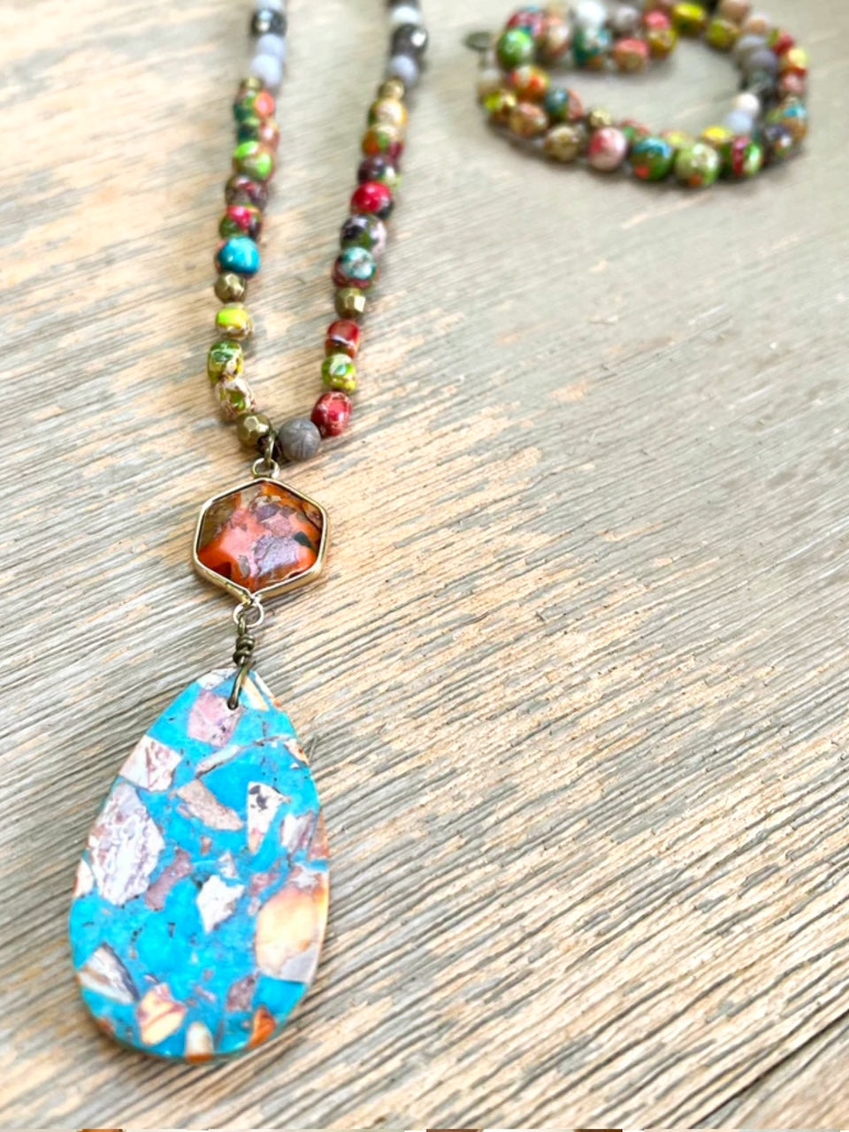 handmade beaded necklace, turquoise and gold necklace, gemstone pendant necklace, long boho necklace, 37 inch statement necklace, southwestern jewelry, desert-inspired necklace, artisan beaded jewelry, rustic boho necklace, earthy statement necklace, turquoise drop necklace, multicolor beaded necklace, nature-inspired jewelry, western chic necklace, festival fashion jewelry, long layering necklace, unique artisan jewelry, fall statement necklace, handcrafted gemstone jewelry, boutique style necklace, bold bohemian necklace, handcrafted fashion jewelry, colorful statement necklace, high-end boho jewelry, chunky beaded necklace, desert glam accessories, western fashion necklace, country concert jewelry, gift for her, birthday gift necklace, trendy boutique jewelry, turquoise and copper necklace, artisan long necklace, artistic statement jewelry, nature lover gift, handmade western jewelry, free-spirited fashion necklace, eclectic beaded necklace, southwestern fashion trends, bold handcrafted necklace