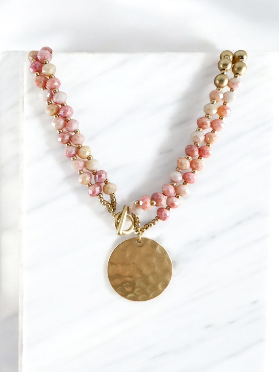rose quartz necklace, pink gemstone necklace, convertible beaded necklace, toggle clasp necklace, long and short necklace, hammered gold pendant necklace, faceted rose quartz jewelry, multi-style statement necklace, versatile layering necklace, blush pink jewelry, adjustable length necklace, boho chic necklace, elegant pendant necklace, warm tone jewelry, boutique fashion accessories, delicate rose quartz necklace, unique toggle necklace, statement jewelry, pastel gemstone necklace, timeless gold pendant, romantic layered necklace, lightweight fashion jewelry, sophisticated boho necklace, pink and gold jewelry, trendy boutique necklace, effortless statement piece, modern vintage necklace, neutral blush jewelry, nature-inspired jewelry, two-in-one necklace, soft glam accessories, minimalist yet bold necklace, gold charm pendant, ethereal fashion jewelry, jewelry gift for her, stylish layering piece, bohemian luxe necklace, semi-precious stone necklace, polished gemstone necklace, high-end fashion jewelry, versatile pink necklace, feminine jewelry, classic rose quartz pendant, trendy gemstone necklace, elegant everyday necklace, boutique style jewelry