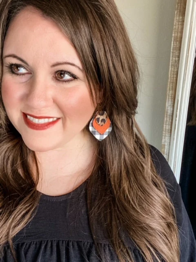 These fall buffalo plaid and leopard stacked earrings are GORGEOUS! You need these earrings in your life! They are a perfect pairing of colors and prints. They're light as a feather...you won't even know you're wearing them!