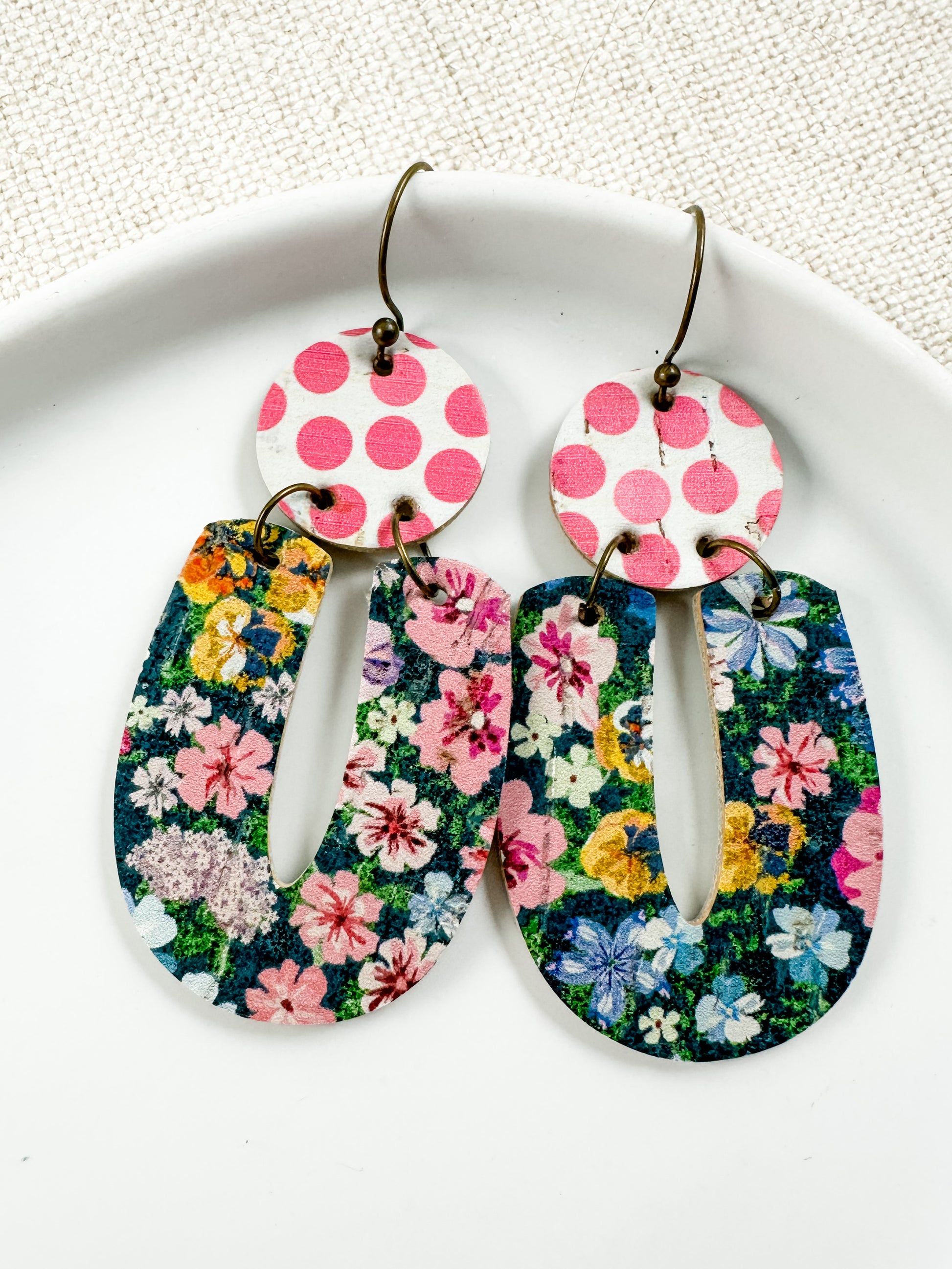 Our Flowers For Days Earrings are the perfect addition to your spring and summer wardrobe! They feature the most perfect pattern mixing of florals and polka dots in gorgeous shades of blues, pinks, yellows, greens, and white. These earrings will give you effortless style and pair so well with tons of outfits in your wardrobe.