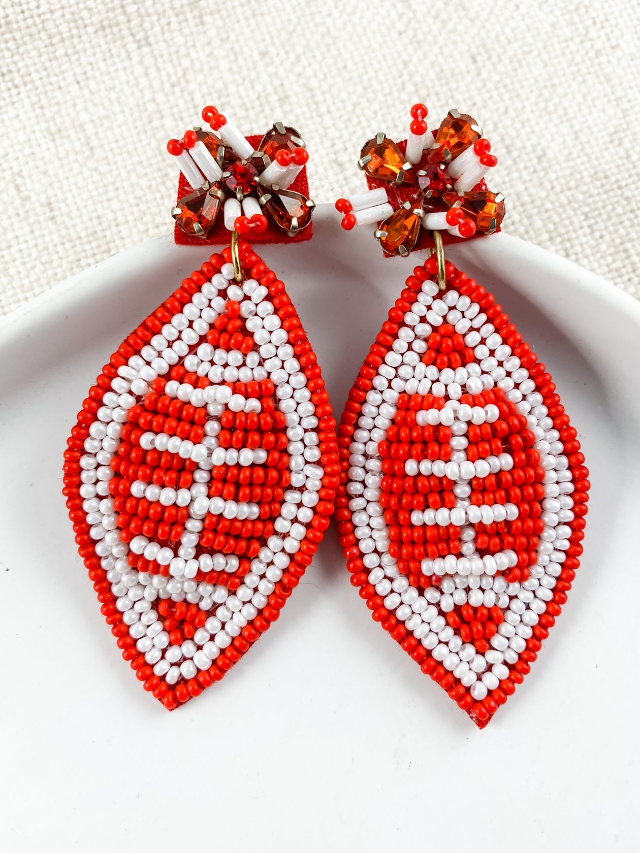 football statement earrings, red and white beaded earrings, game day earrings for women, football & fireworks earrings, handmade football earrings, beaded football earrings, 3 inch drop earrings, sparkly sports earrings, boutique game day jewelry, red football earrings, earrings for football games, tailgate earrings, bold team spirit earrings, statement sports accessories, beaded fan earrings, football mom earrings, team color earrings, earrings for sports fans, gameday glam earrings, football party accessories, fun football earrings, sports earrings with sparkle, red and white game day accessories, stylish fan gear, handmade team spirit earrings, boutique earrings for game day, lightweight beaded earrings, earrings for football season, crystal beaded football earrings, unique football earrings, earrings for tailgate outfit, gift for football fan, fashion earrings for sports lovers, spirited statement earrings, bold earrings for game day, fan favorite accessories, boutique fan earrings