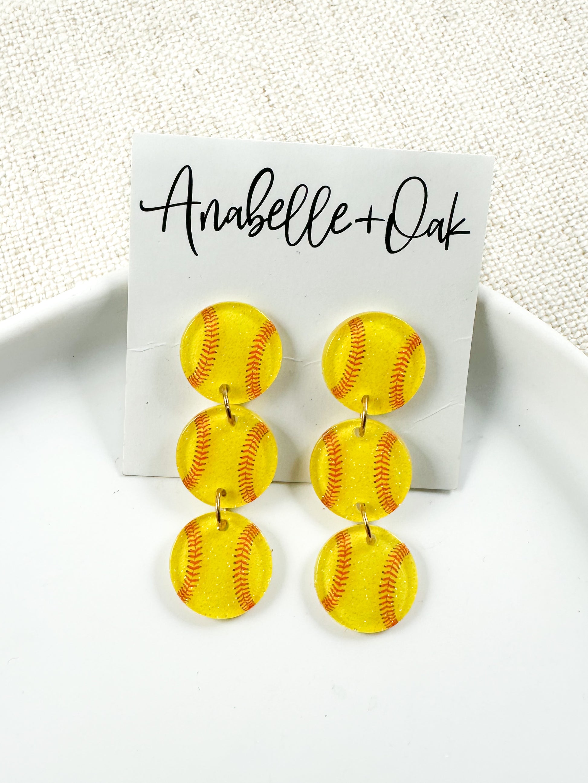 triple softball earrings, full count softball earrings, dangle softball earrings, yellow softball drop earrings, softball stitch earrings, softball themed jewelry, softball game day earrings, softball earrings for women, fastpitch softball earrings, softball mom gift, three ball softball earrings, statement softball earrings, lightweight sports earrings, softball dangle earrings, softball player accessories, high school softball earrings, softball fan jewelry, handmade softball earrings, boutique softball earrings, unique softball earrings, softball tournament earrings, girls softball earrings, softball earrings for teens, softball jewelry for fans, softball fashion accessories, sports earrings for women, softball gift for daughter, everyday softball earrings, trending softball earrings, long softball earrings, softball lover gift idea, cute softball earrings, fun softball earrings, bold softball earrings, softball season accessories, fastpitch game day look