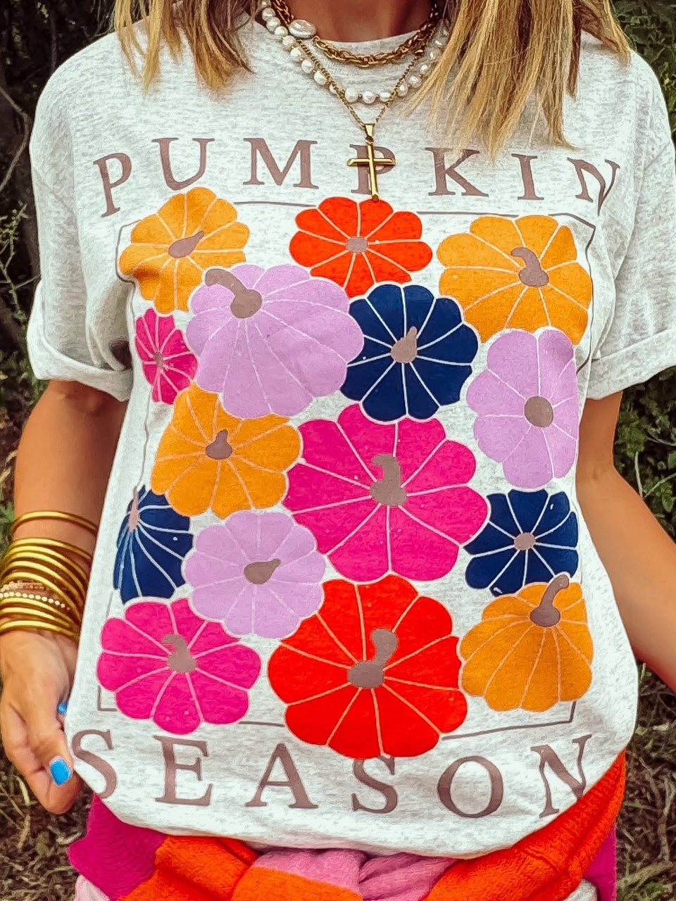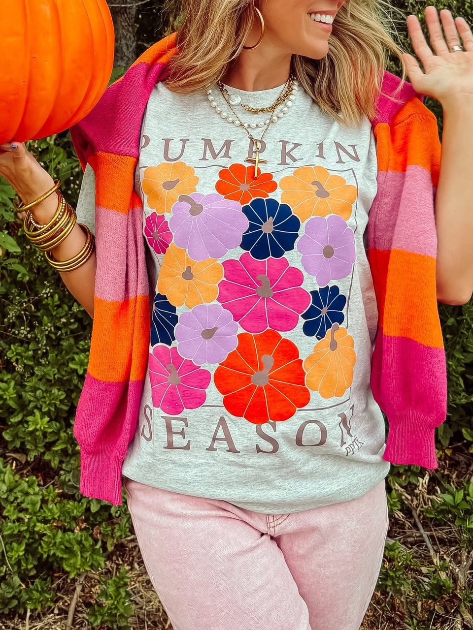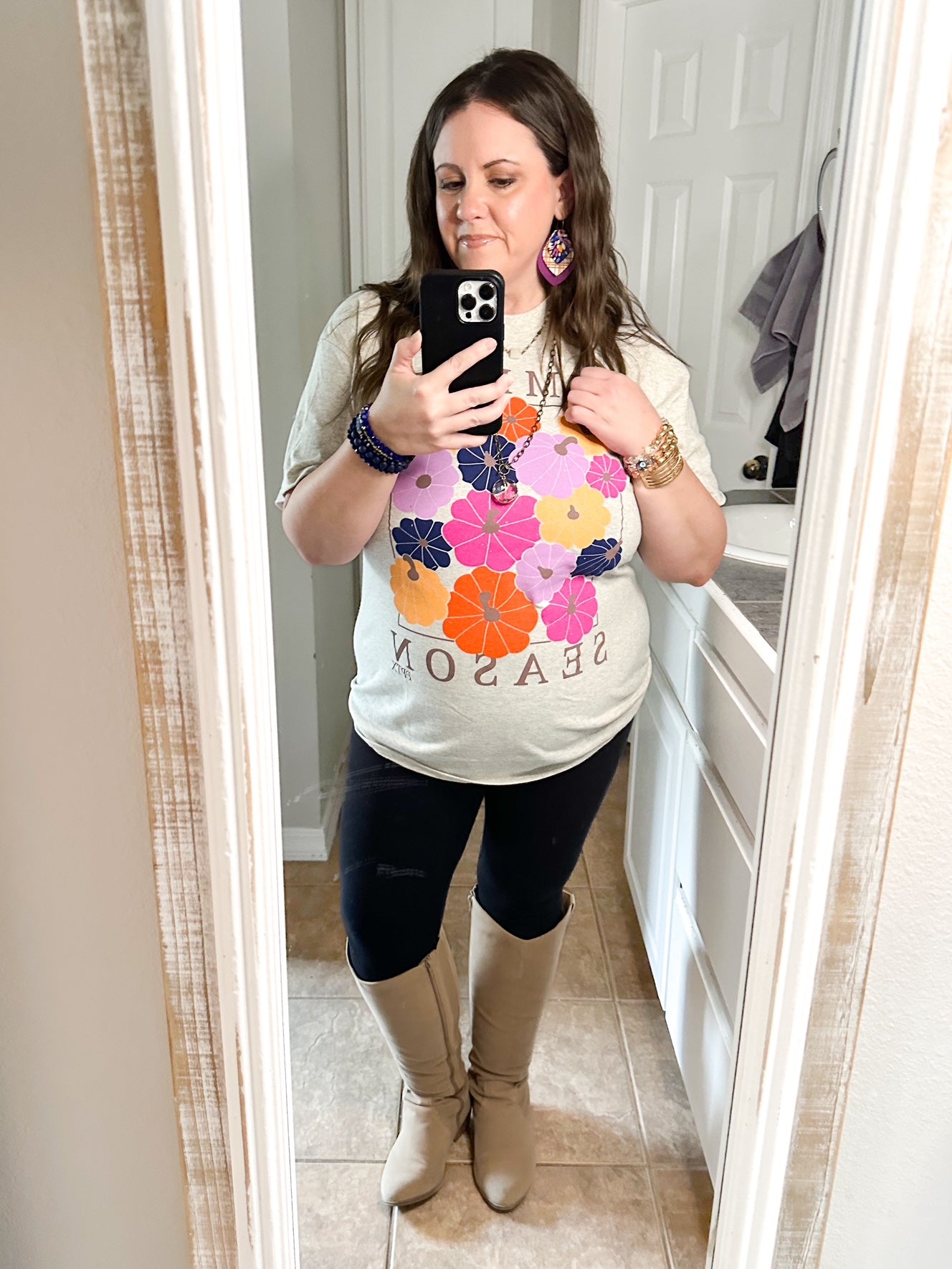The Harvest Glow Tee might just be my favorite fall tee yet. There’s something about those deep, jewel-tone colors that feels so rich and cozy — like the best parts of autumn wrapped up in one bold little pumpkin print.
