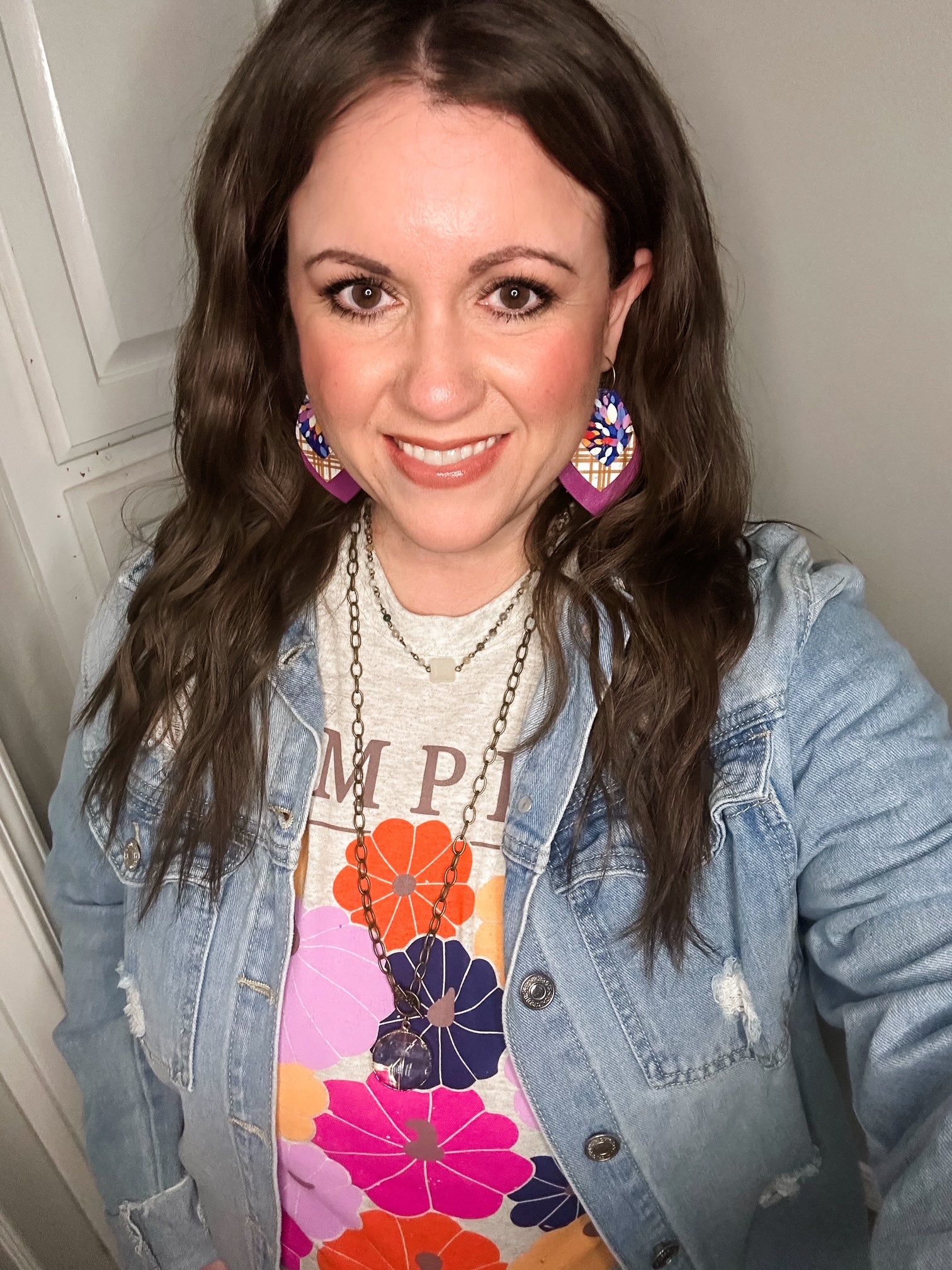 It’s a Port & Co tee (so soft + sturdy), unisex fit and true to size. I love that it’s easy enough to throw on with jeans, but it also layers perfectly under a flannel or chunky cardigan when the air finally decides to cool off.