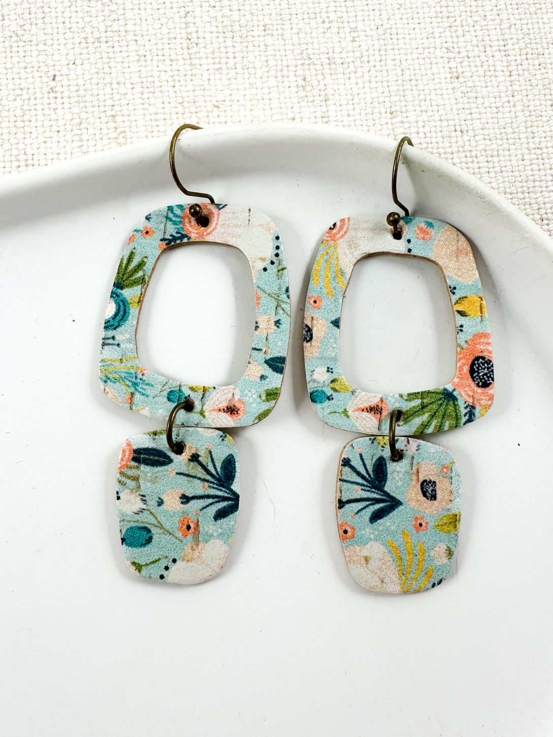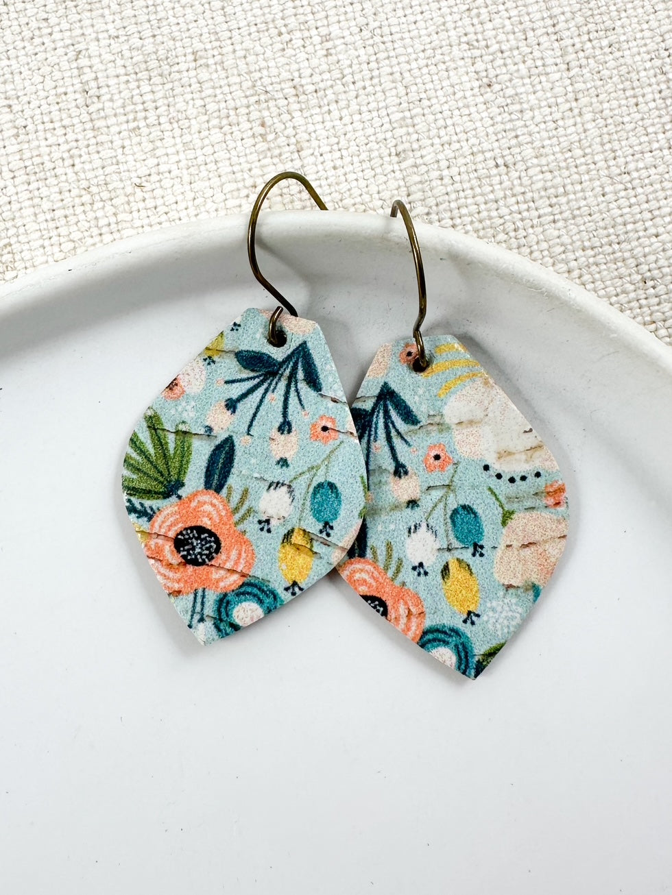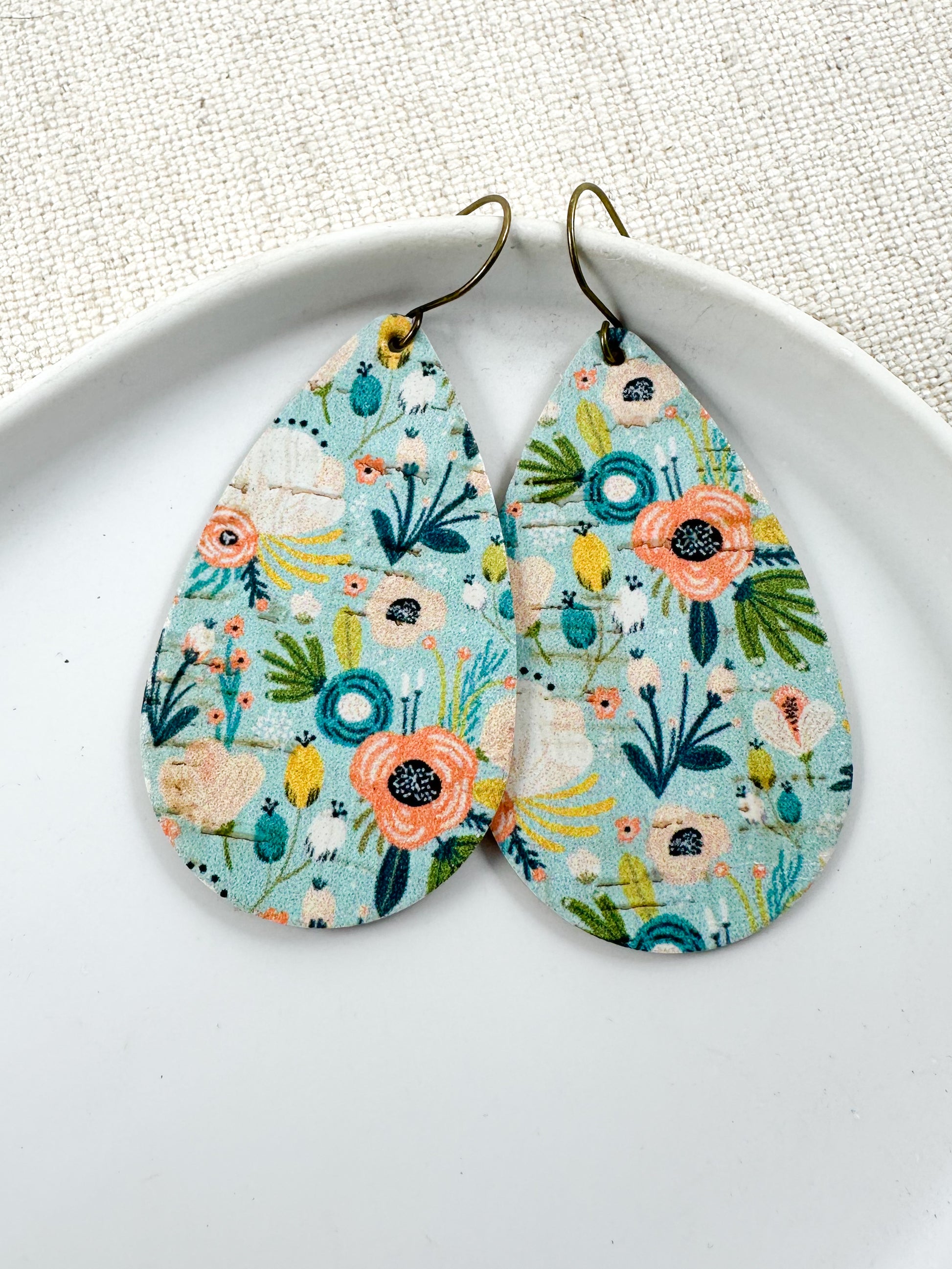 aqua floral cork earrings, hibiscus print earrings, tropical flower earrings, coral and teal earrings, pastel floral earrings, handmade cork earrings, cork and leather earrings, lightweight floral earrings, garden-inspired earrings, spring summer earrings, boutique floral earrings, cheerful flower earrings, colorful statement earrings, tropical cork earrings, small business earrings, handmade earrings for women, floral cork earrings for spring, boho garden earrings, soft aqua earrings, cork earrings with leather backing, gift for floral jewelry lovers, beachy floral earrings, vibrant bloom earrings, flower print cork earrings, custom shape floral earrings, playful pastel earrings