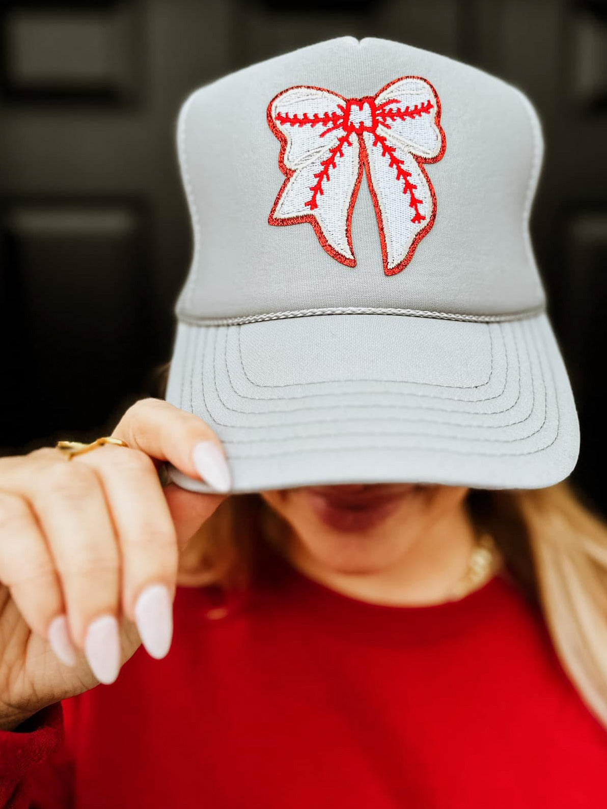 Baseball, but make it adorable. 😍 The Home Run Honey Trucker Hat is the perfect blend of sporty and stylish, featuring a baseball-stitched chenille bow patch on a sleek silver trucker hat. Designed with a high-crown mesh back for max breathability, a polyester foam front that’s crazy lightweight, and an adjustable snapback for the perfect fit—this hat is as comfy as it is cute.