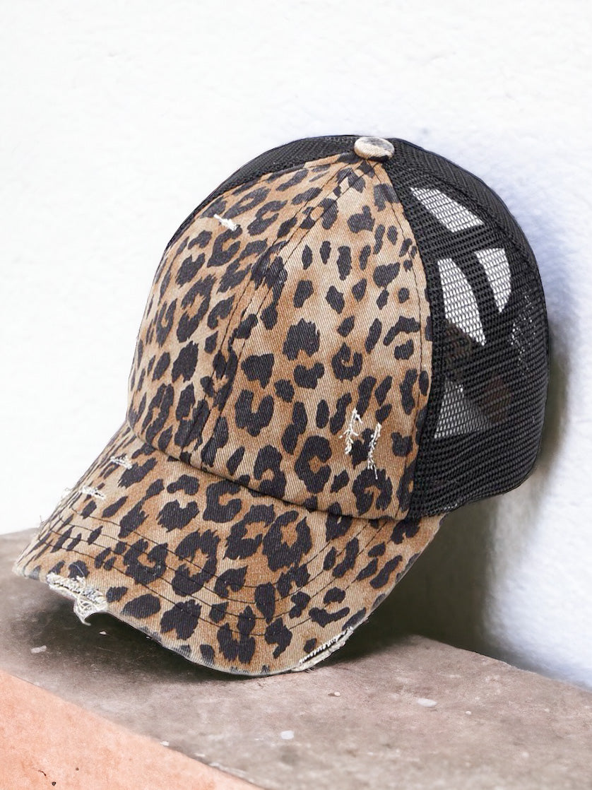 C.C Distressed Criss Cross Pony Cap with Mesh Back