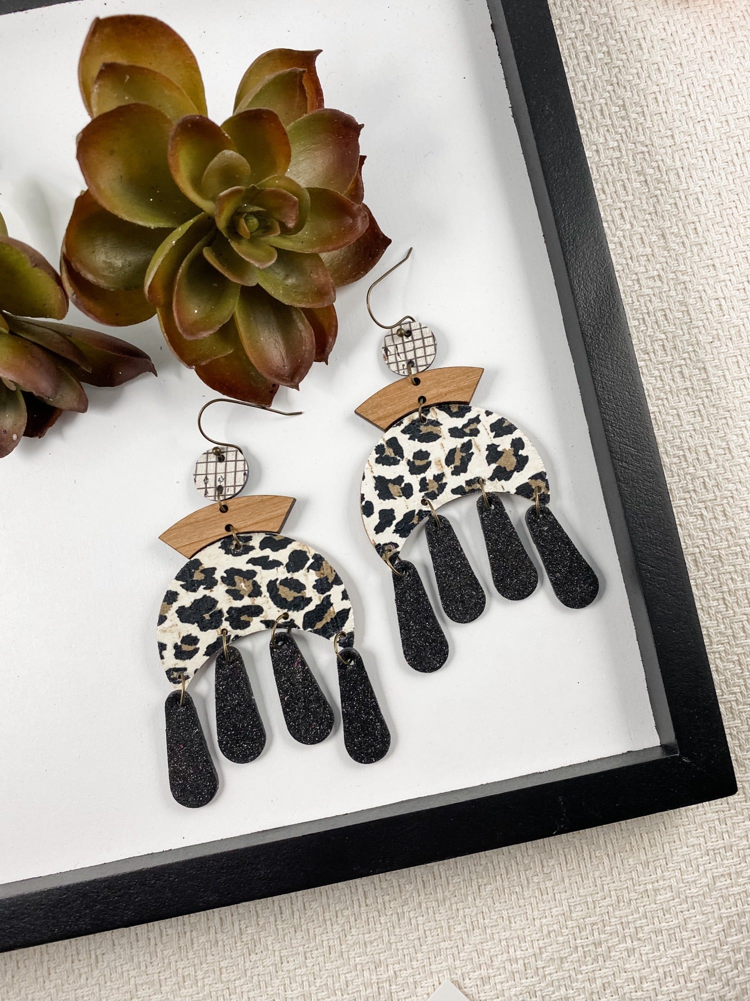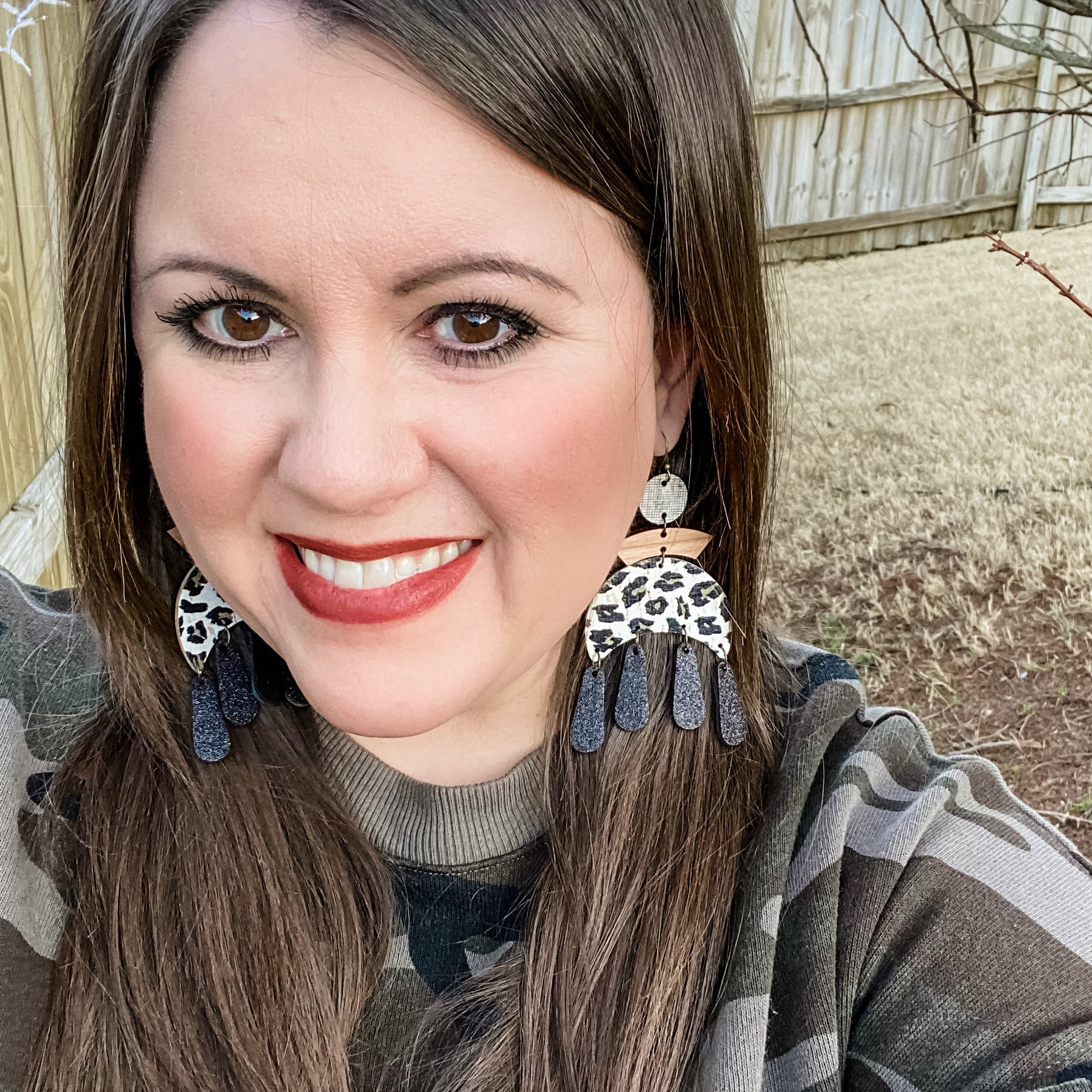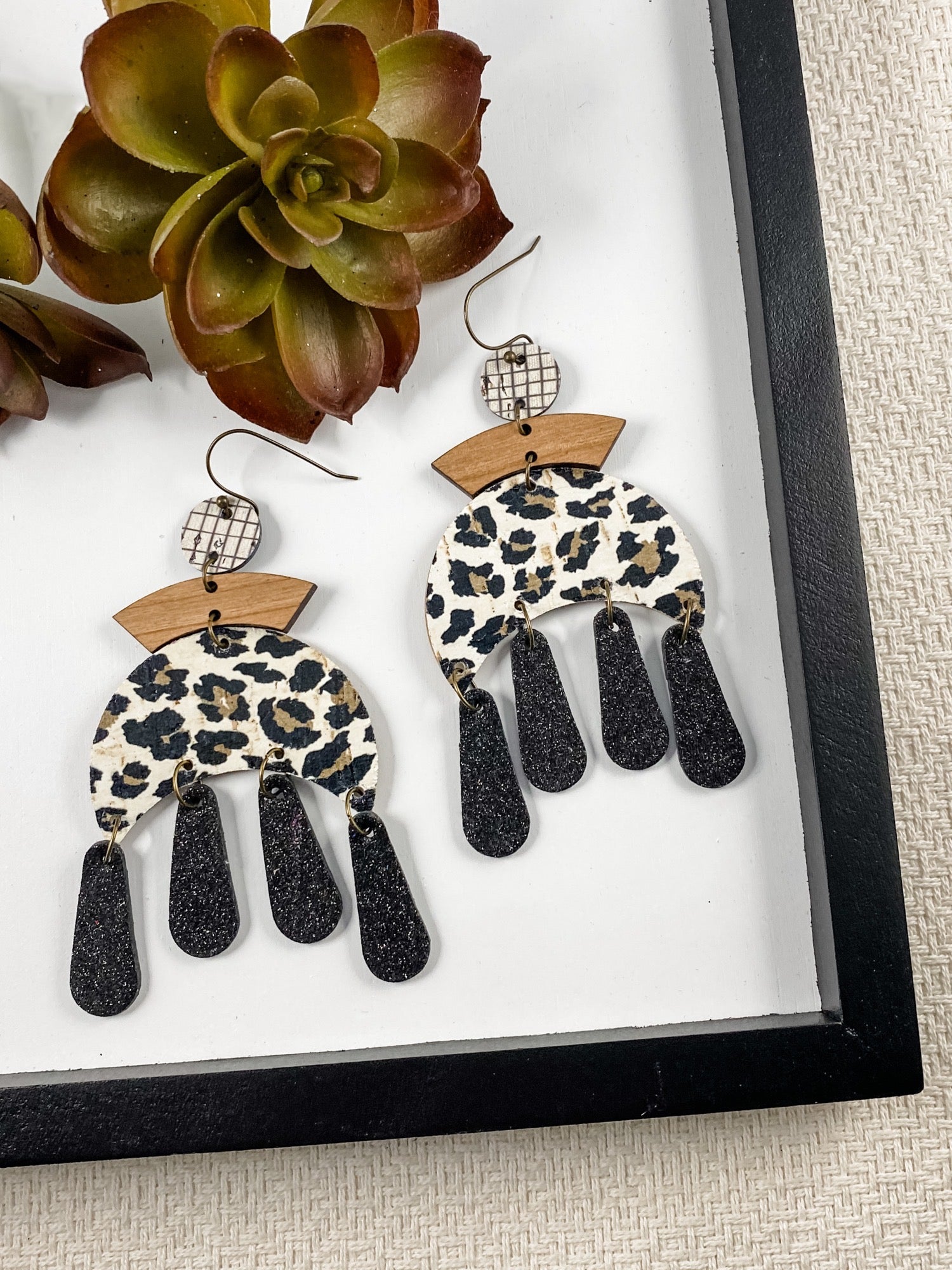 How amazing are these Leopard Moon Chandelier earrings??? Black, white, and gray paired with gorgeous wood accents are always a winning combination--these earrings are such a statement piece. This geometric fringe style is a fresh modern twist on boho vibes.