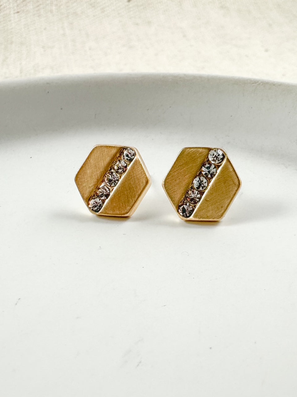 gold geometric stud earrings, gold crystal stud earrings, brushed gold stud earrings, faceted gold earrings, modern gold studs, hexagon stud earrings, small gold earrings for women, gold statement studs, minimalist gold earrings, high-end look jewelry, luxury inspired gold studs, everyday gold earrings, gold earrings for sensitive ears, hypoallergenic gold studs, gold earrings for work or weekend, gold studs for formal events, cocktail party earrings, gold earrings for weddings, bridal shower earrings, bridesmaid gift jewelry, dainty gold sparkle earrings, gift for her under $30, birthday gift idea, polished gold earrings, boutique style stud earrings, gold fashion jewelry, gold earrings with rhinestones, neutral gold earrings, elevated basic jewelry, petite gold statement earrings, classic gold accessories, trendy stud earrings women, stylish gold jewelry, southern boutique gold earrings, small dressy earrings