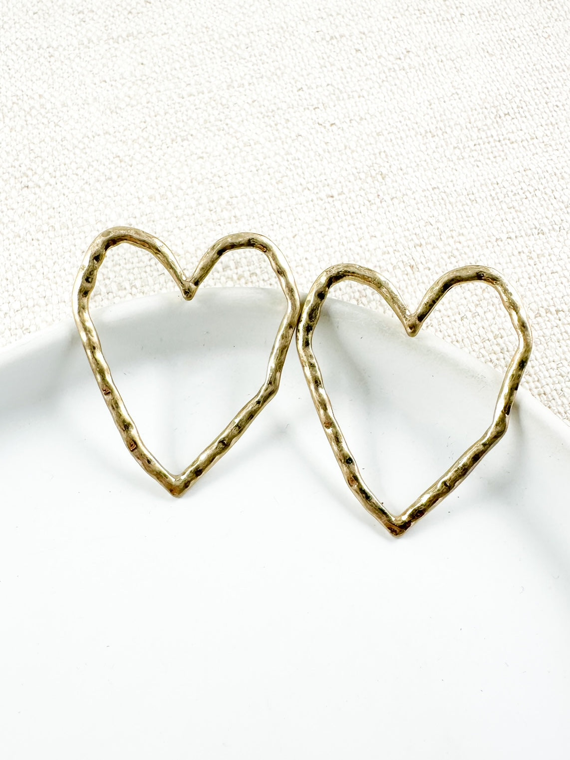 Love Unscripted Earrings, gold heart earrings, statement stud earrings, hammered gold earrings, large heart studs, open heart earrings, textured metal earrings, modern statement jewelry, bold gold earrings, minimalist statement studs, romantic fashion accessories, versatile gold earrings, everyday statement jewelry, trendy heart earrings, unique metal earrings, handmade-style earrings, gift for her, Valentine’s Day earrings, anniversary gift jewelry, stylish gold accessories, fashion-forward earrings, boho chic earrings, artisan-inspired earrings, lightweight statement studs, elegant heart-shaped jewelry, timeless love earrings, hammered metal heart studs, trendy yet classic earrings, boutique-style jewelry, gold-plated statement earrings, perfect gift for girlfriends or wives.