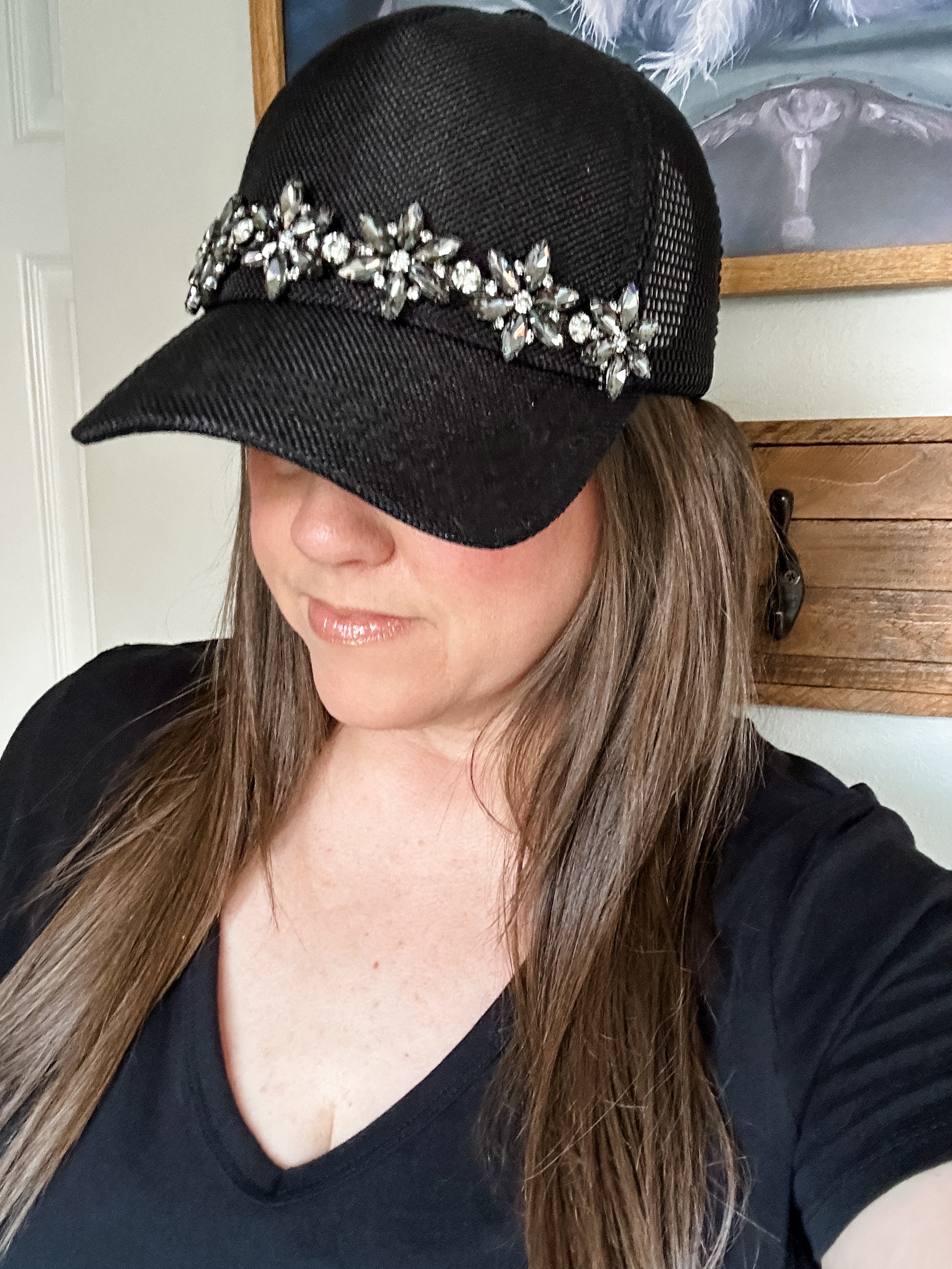 Dress it up with a blazer and skinnies or toss it on with leggings and a tee—either way, this crystal embellished baseball cap turns everyday into a little moment.