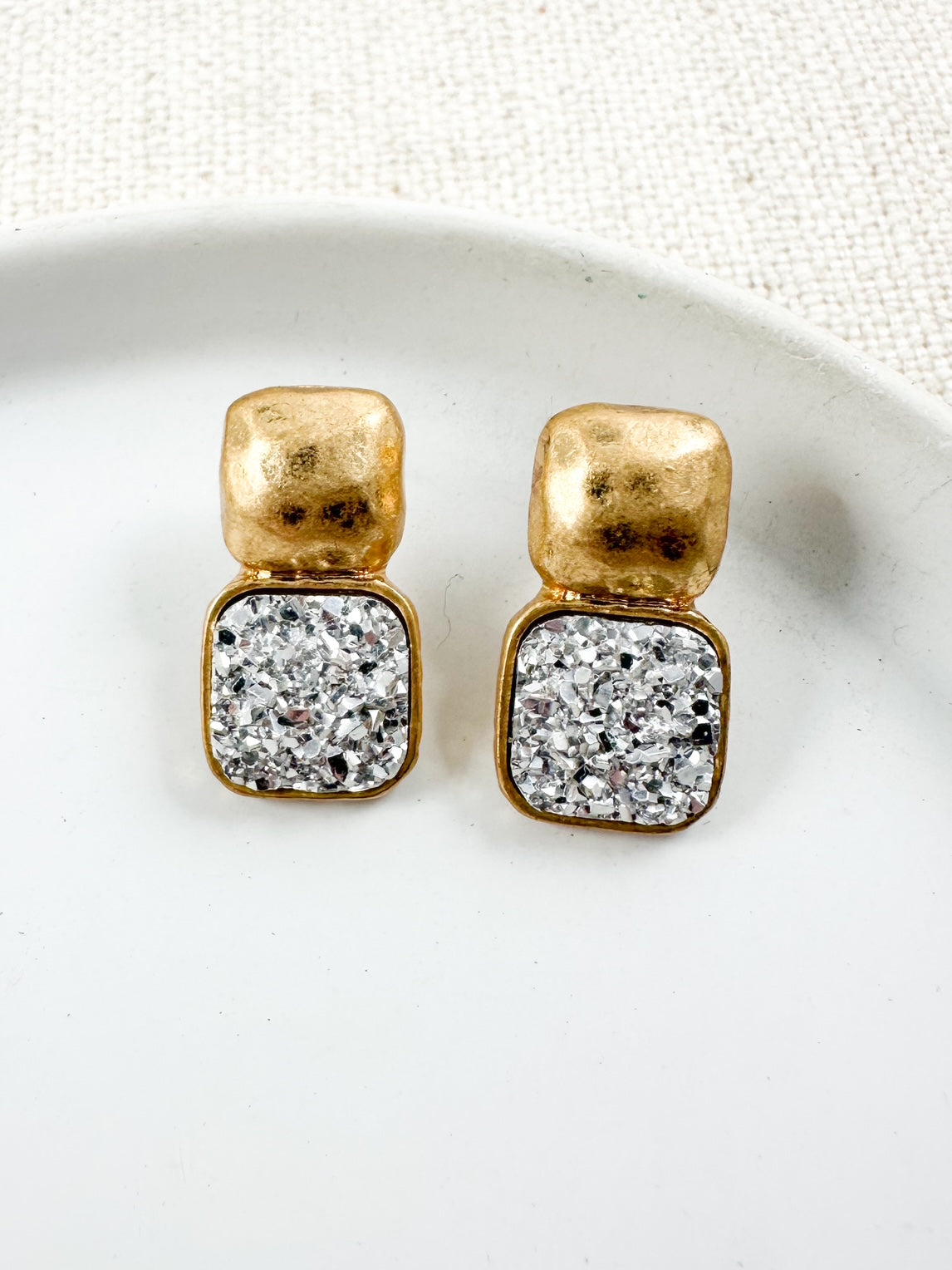 midtown spark earrings, silver druzy stud earrings, 1 inch stud earrings, sparkly stud earrings, luxury inspired silver earrings, crystal druzy earrings, hammered metal stud earrings, statement stud earrings, versatile silver earrings, party earrings, wedding guest earrings, date night jewelry, holiday earrings, fall stud earrings, winter stud earrings, christmas earrings, new year’s eve earrings, trendy stud earrings, small statement earrings, minimalist glam earrings, everyday silver studs, boutique earrings, chic silver earrings, high end inspired jewelry, gift for her earrings, stocking stuffer earrings