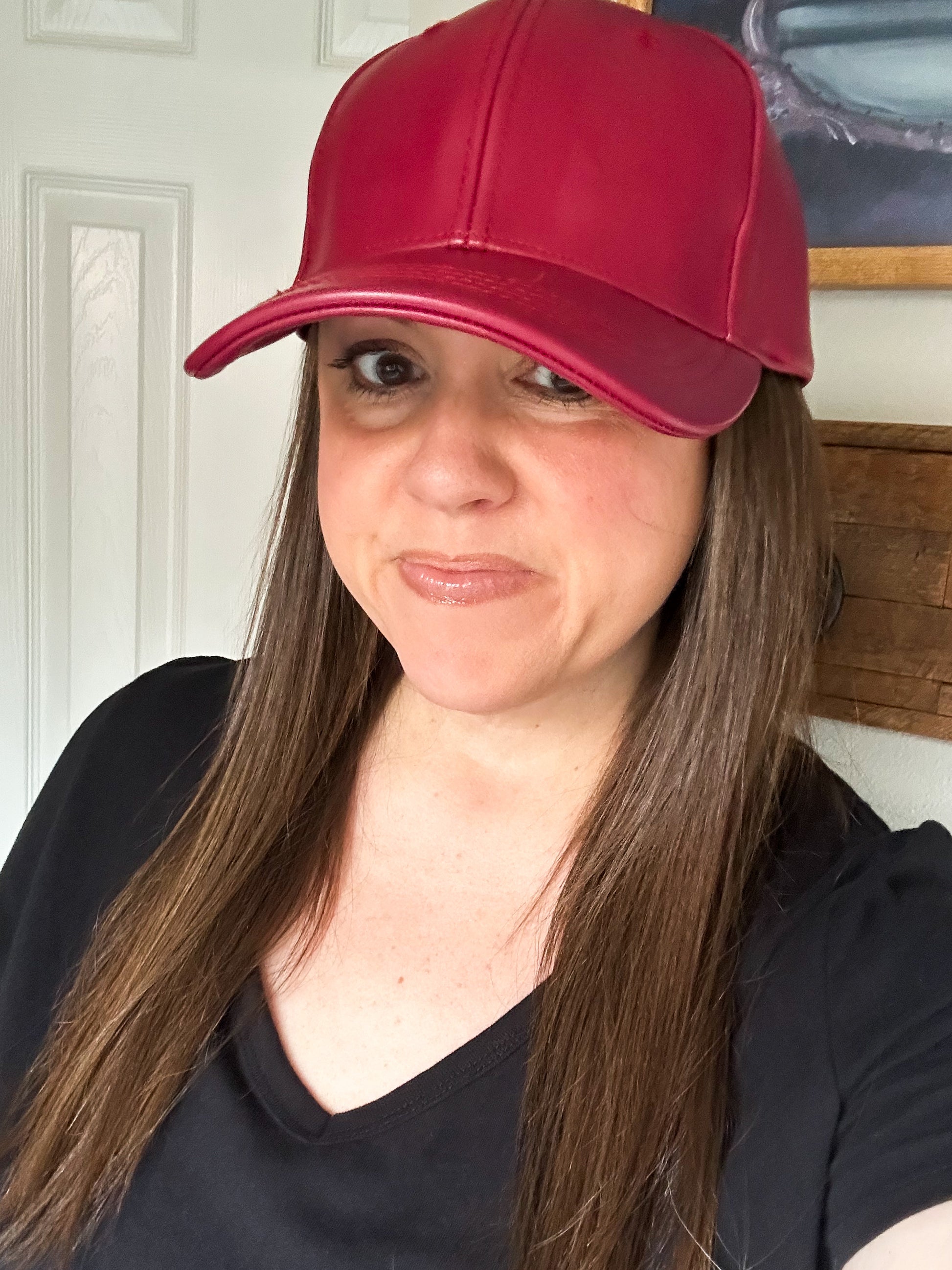 modern classic hat maroon, vegan leather baseball cap, pleather dad cap, luxury inspired vegan leather hat, women’s trendy baseball cap, everyday casual hat for women, adjustable vegan leather hat, fashion forward dad cap, sleek sporty hat, cruelty free leather look hat, eco friendly vegan leather cap, chic baseball cap women, elevated casual accessories, minimalist streetwear hat, trendy maroon baseball cap women, game day vegan leather hat, fall fashion hat women, stylish caps for errands, polished sporty chic hat, versatile vegan leather accessories, casual elevated hat women, gift for fashion lover, women’s weekend style hat, adjustable strap dad cap, lightweight vegan leather cap, comfortable baseball hat women, vegan leather street style cap