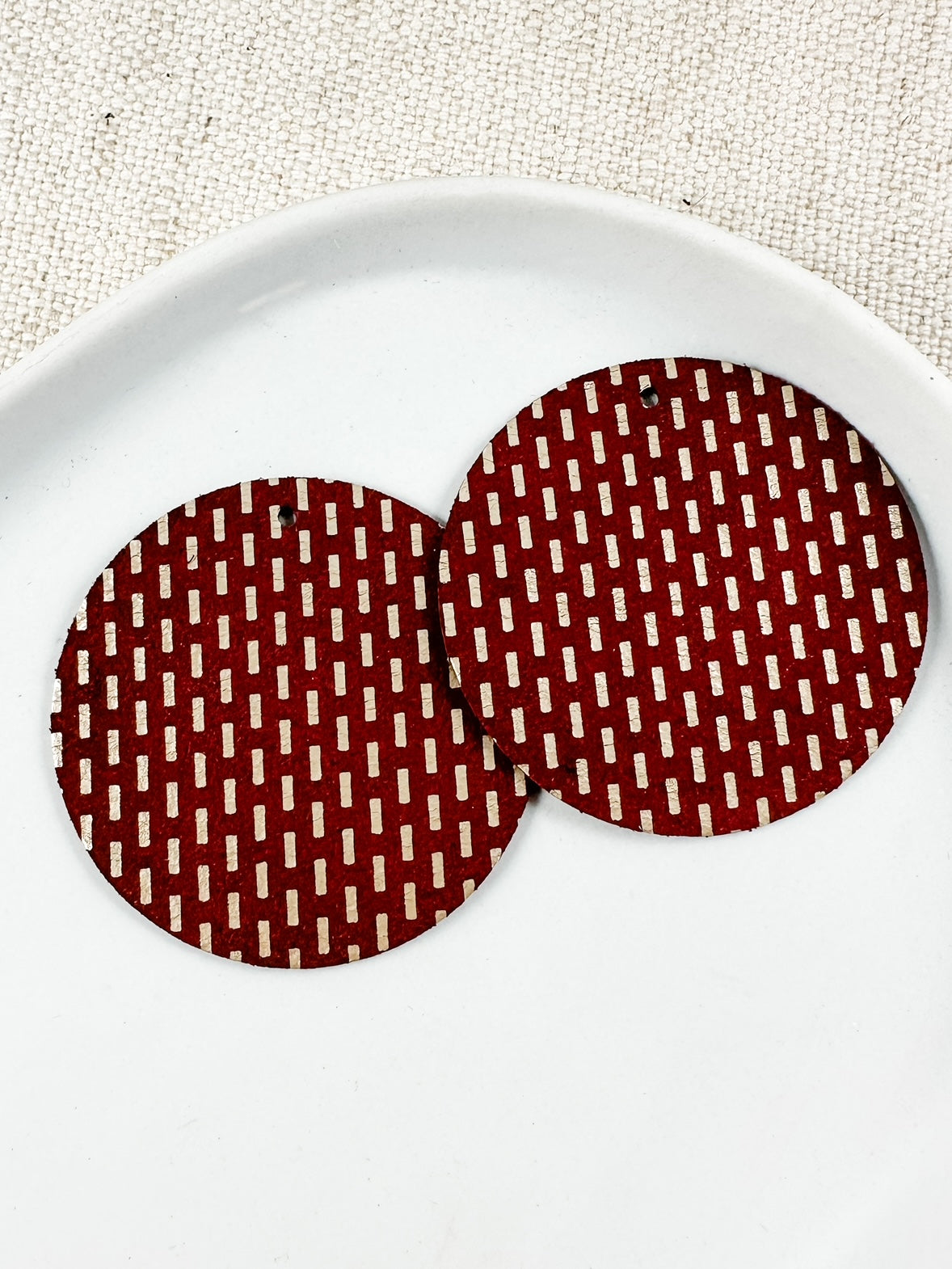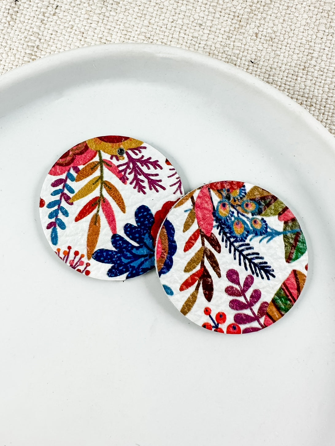 Let me introduce you to our charming Mulberry & Floral Earrings, handcrafted from genuine leather. These circular earrings have 3 stackable layers, inviting you to mix and match them in seven delightful ways. You can choose from 2 sizes -- the dainty 1.25-inch option or the more striking 2-inch pair.