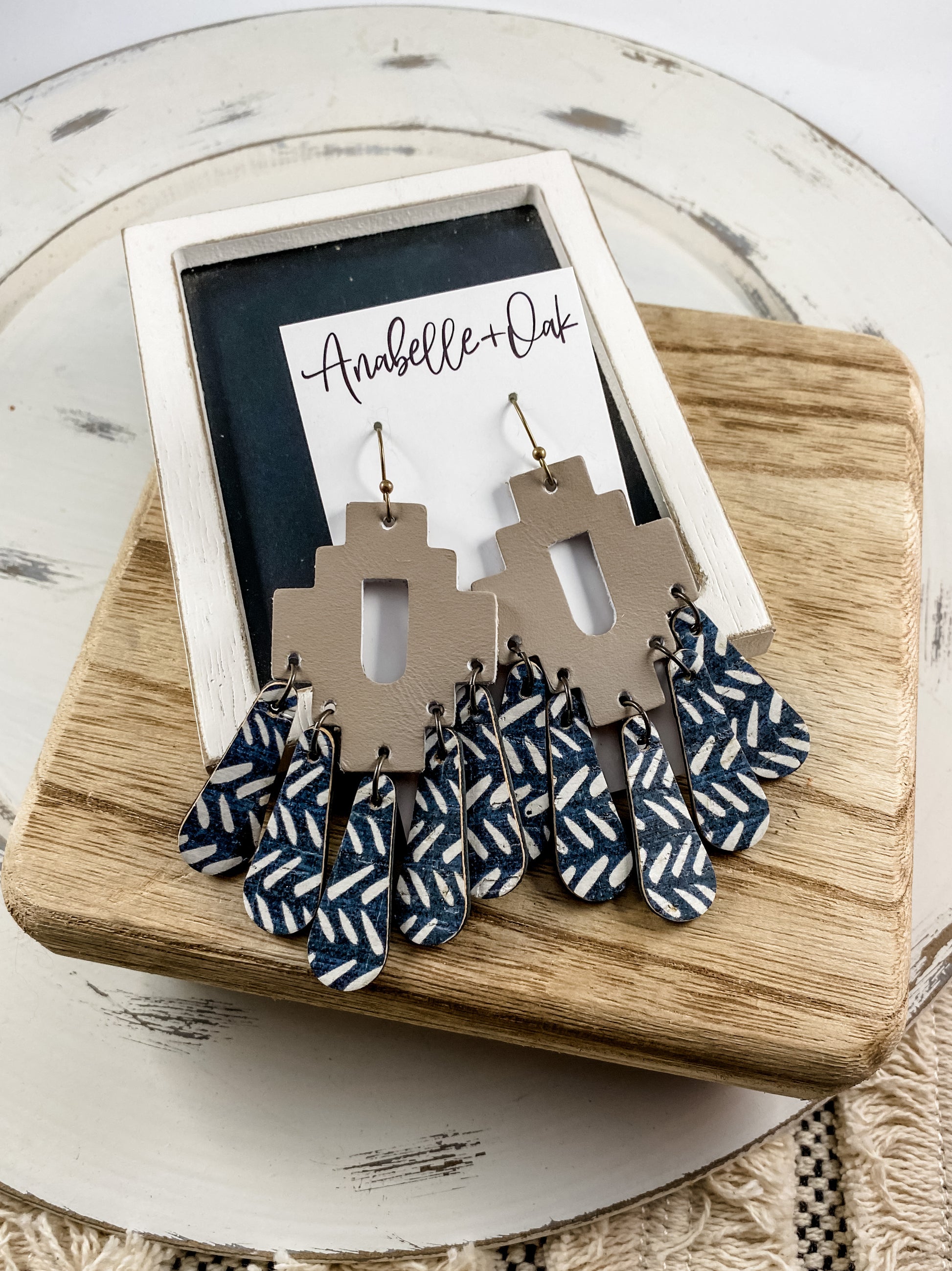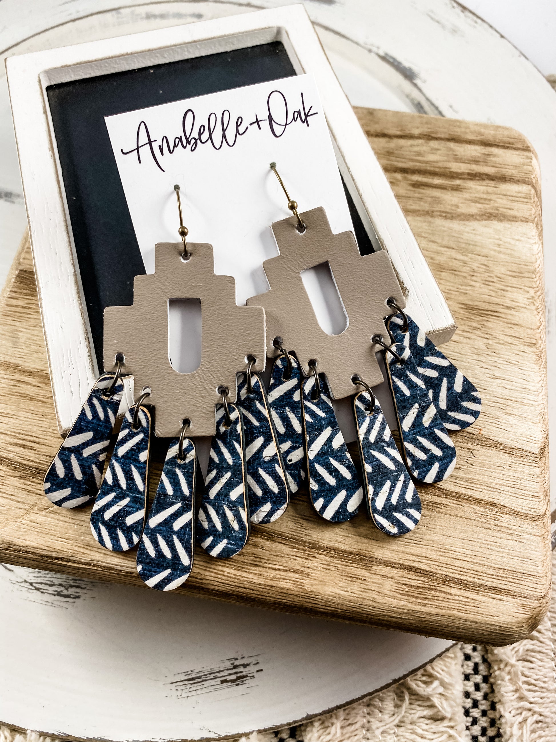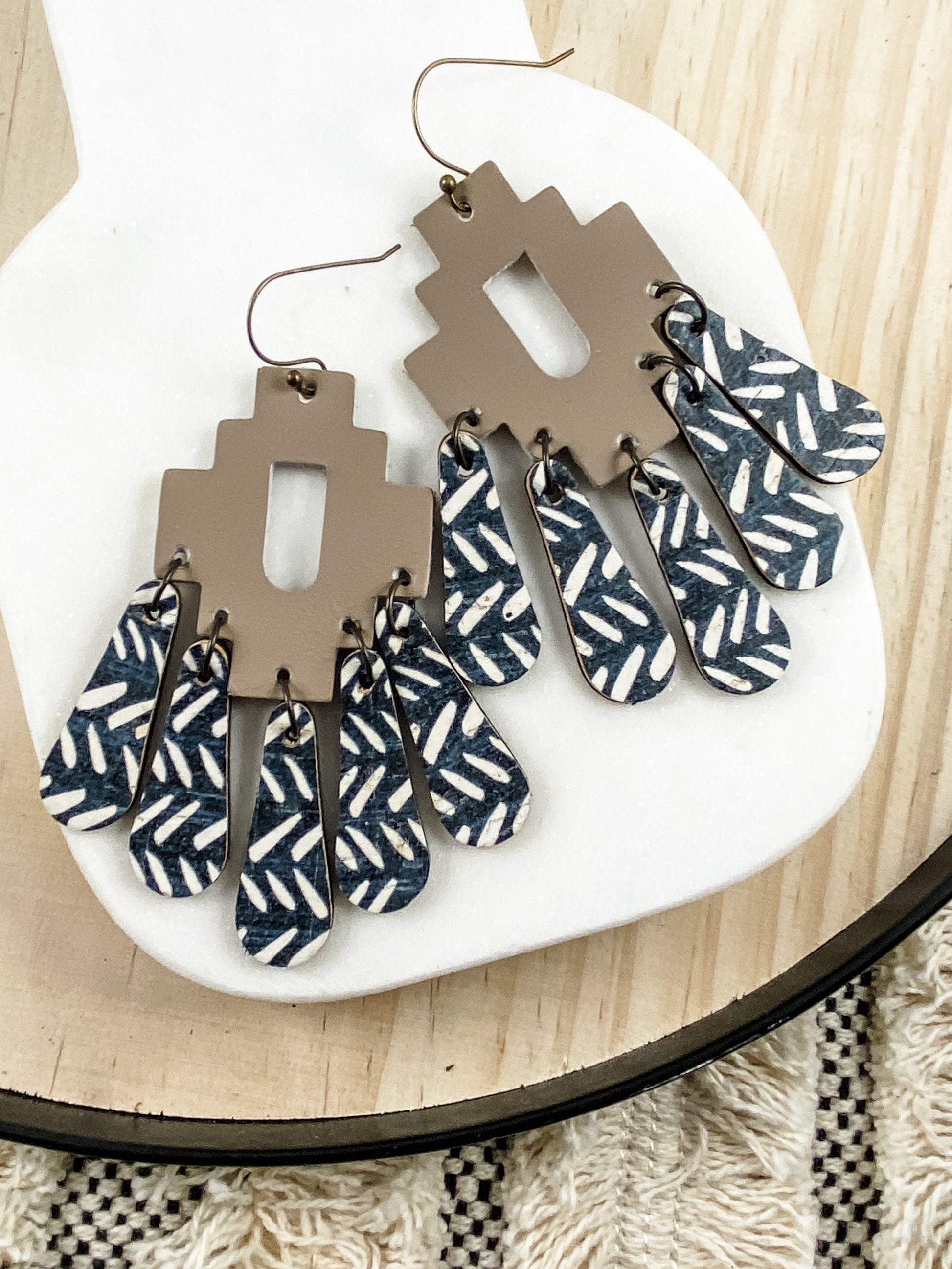 These neutral leather chandelier earrings are amazing! A beautiful clay colored cork with black and white dangles—neutral enough to wear all the time, but gorgeous enough to make a statement.