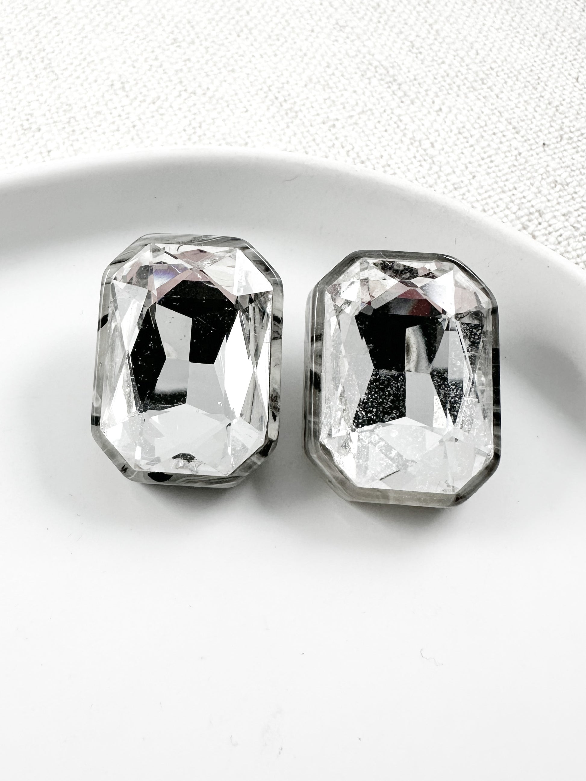 glasshouse gem studs, silver stud earrings, faceted crystal earrings, statement stud earrings, bold stud earrings, geometric earrings, vintage-inspired studs, clear gemstone earrings, elegant jewelry, evening jewelry, formal event earrings, wedding guest jewelry, bridal earrings, cocktail party accessories, old hollywood glamour, classic statement earrings, dazzling studs, oversized studs, minimalist statement earrings, modern elegance, luxury-inspired jewelry, timeless fashion, gift for her, anniversary gift, birthday jewelry, holiday party earrings, fashion-forward jewelry, trending accessories, affordable luxury, chic and sophisticated jewelry, polished style, fashion statement earrings, boutique jewelry