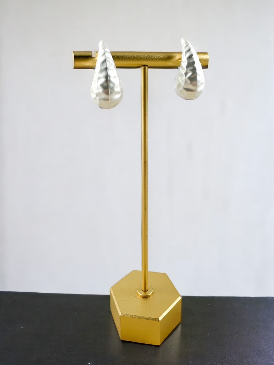 Satin Sculpted Raindrop Earrings, Matte Silver