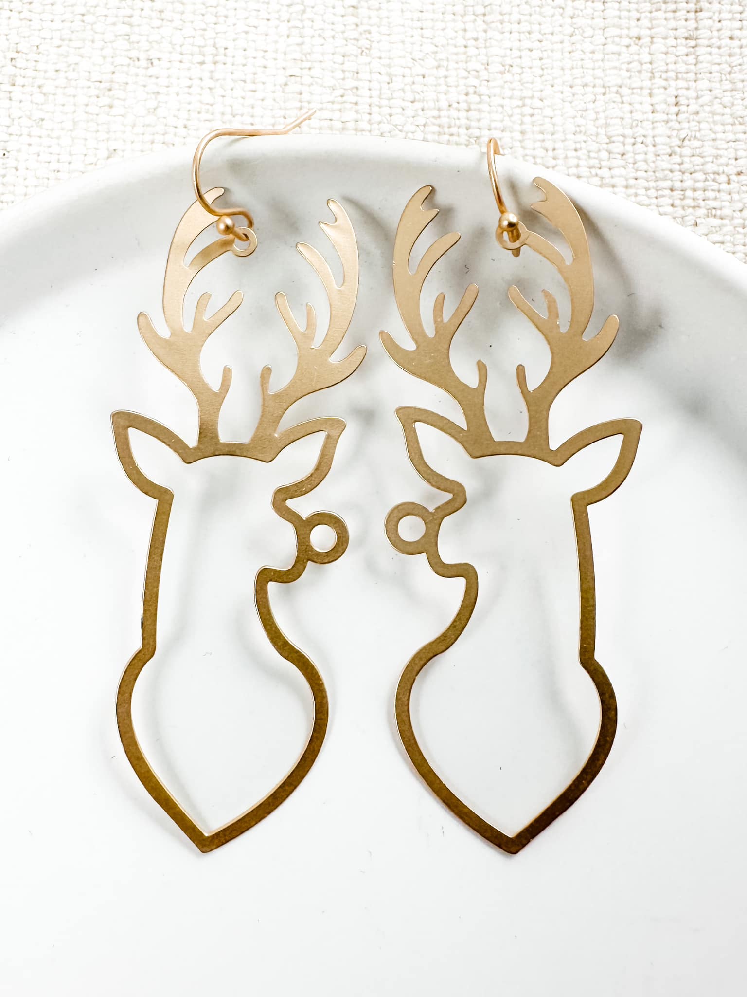 gold reindeer earrings, matte gold holiday earrings, minimalist Christmas earrings, reindeer silhouette earrings, festive reindeer dangle earrings, holiday earrings for women, Christmas earrings with antlers, boutique holiday jewelry, modern Christmas earrings, reindeer shaped earrings, lightweight Christmas earrings, gold holiday statement earrings, festive earrings under $30, holiday earrings for teachers, Secret Santa gift earrings, chic holiday accessories, Christmas jewelry gift idea, matte gold reindeer jewelry, earrings for December outfits, neutral Christmas earrings, minimalist festive earrings, holiday earrings for office wear, giftable holiday earrings, elegant Christmas earrings, reindeer earrings for gifting, boutique Christmas accessories, classy holiday earrings, Christmas party earrings for women