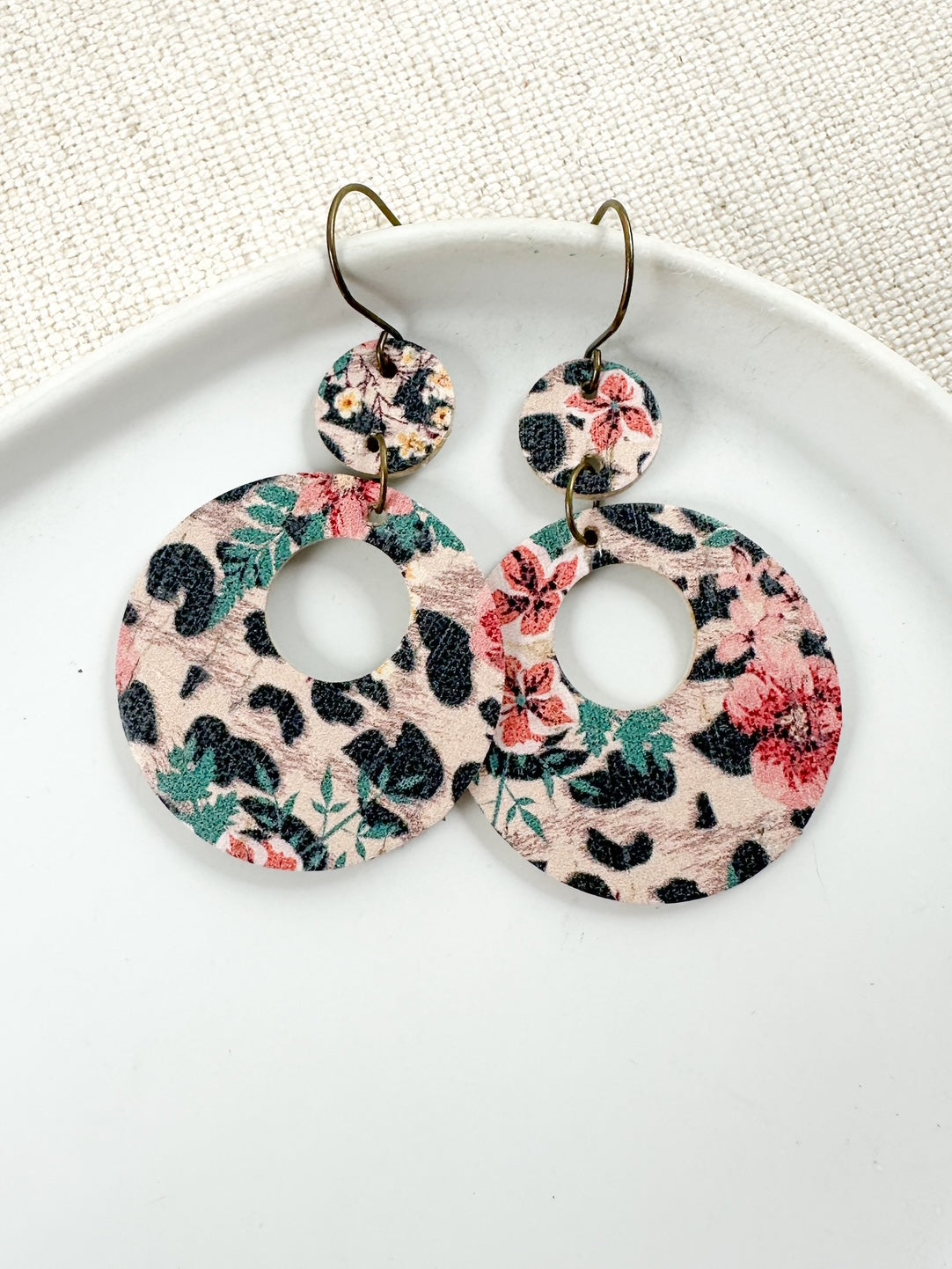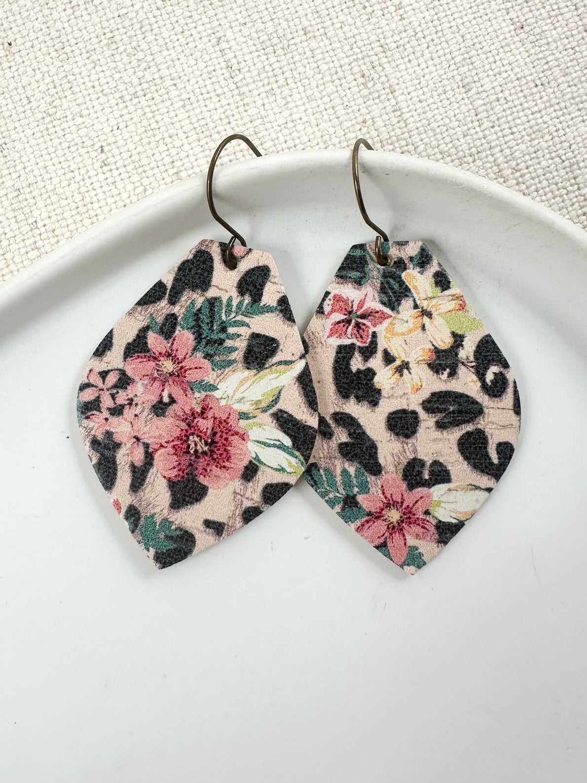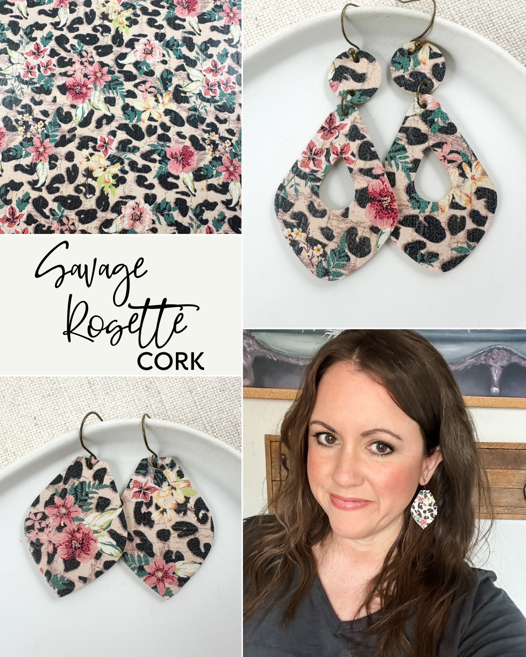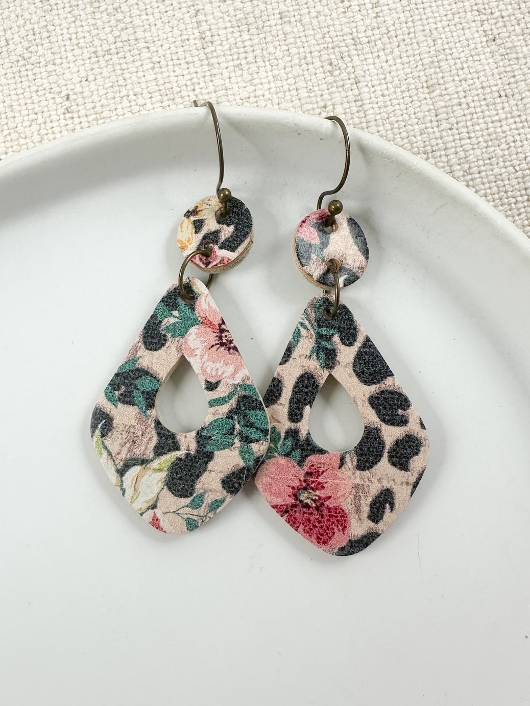floral leopard print earrings, neutral floral cork earrings, wildflower animal print earrings, leopard and rose earrings, savage floral earrings, edgy floral earrings, pink and black earrings, handmade cork earrings, leather-backed cork earrings, bold floral earrings, floral statement earrings, boutique animal print earrings, lightweight cork earrings, boho floral earrings, romantic wild earrings, mixed print earrings, floral animal print jewelry, small business statement earrings, floral cork earrings for women, fierce floral earrings, pink wildflower earrings, floral earrings with edge, unique cork earrings, trendy boutique earrings, custom shape cork earrings, neutral earrings with floral accents, soft and wild earrings