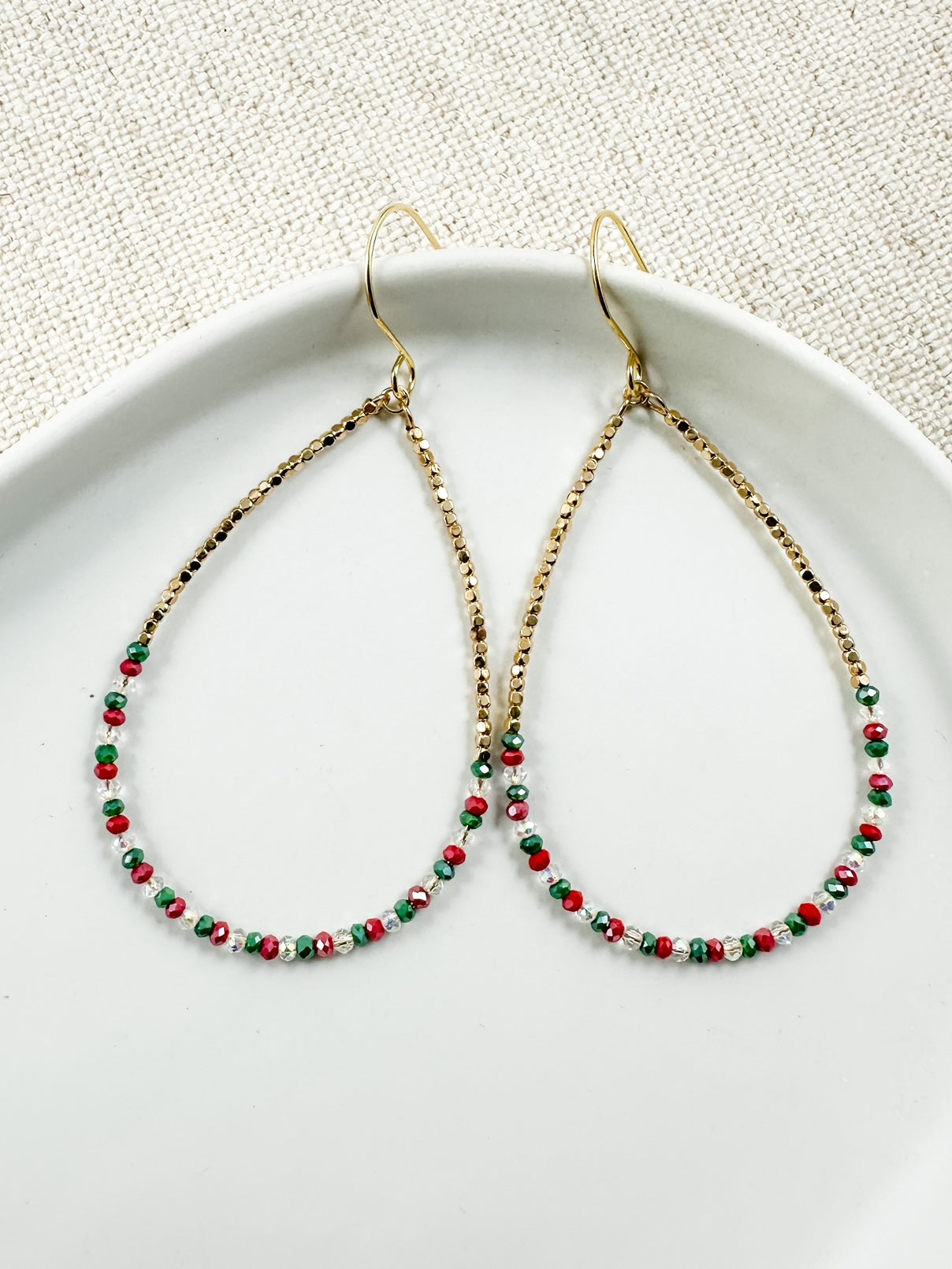 season's shimmer earrings, long dainty beaded teardrop earrings, gold teardrop earrings, red and green beaded earrings, festive beaded earrings, lightweight holiday earrings, crystal beaded dangle earrings, sparkly Christmas earrings, dainty Christmas jewelry, teardrop holiday earrings, seed bead teardrop earrings, long gold hoop earrings, minimalist holiday earrings, winter party jewelry, holiday outfit earrings, beaded earrings for women, trendy teardrop earrings, elegant holiday earrings, red green crystal earrings, delicate Christmas earrings, girls holiday gift idea, dainty stocking stuffer earrings, glam beaded hoops, holiday jewelry trends, teardrop earrings for parties, handmade Christmas earrings, lightweight statement earrings, festive gold dangles, boho holiday earrings, colorful beaded earrings