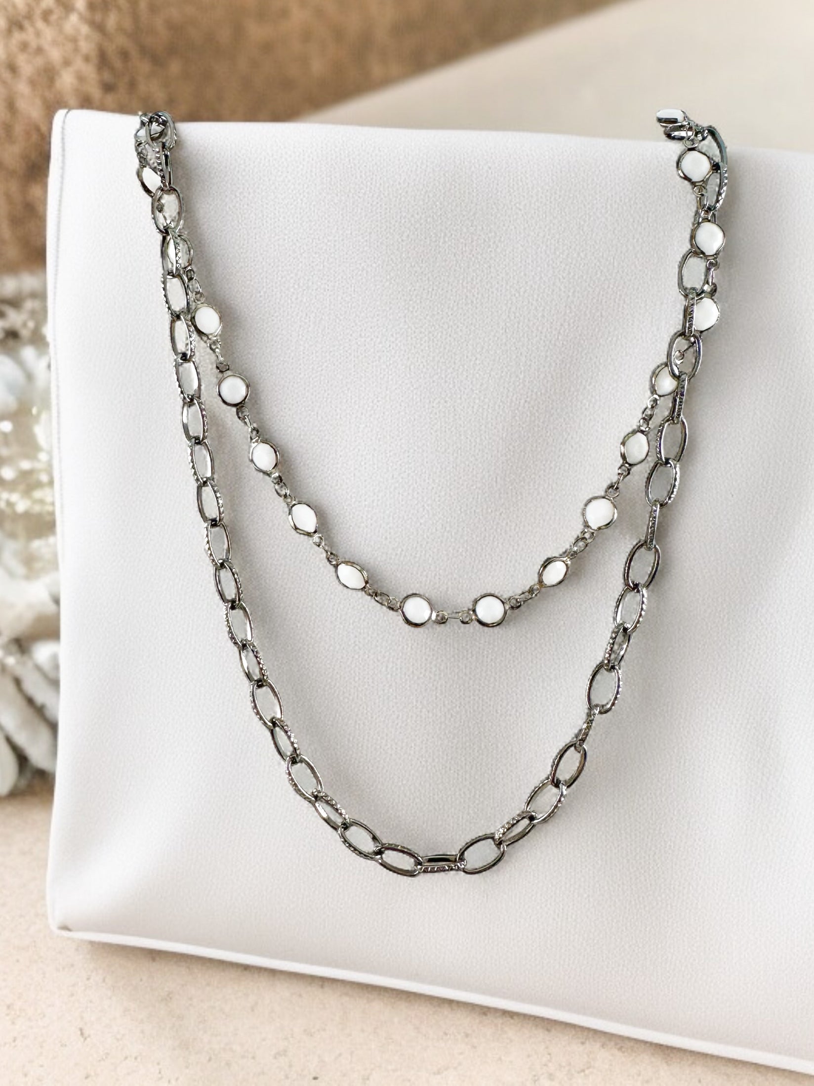 shadow & light necklace, white and hematite necklace, double strand statement necklace, handmade beaded necklace, 18 inch layered necklace, gunmetal chain necklace, white puff bead necklace, modern statement jewelry, hematite chain link necklace, bold layering necklace, high-end boutique jewelry, handcrafted mixed metal necklace, edgy yet elegant necklace, fashion-forward layering necklace, versatile two-strand necklace, neutral statement necklace, classic meets modern jewelry, chic black and white necklace, trendy minimalist necklace, statement chain necklace, luxe everyday necklace, industrial glam jewelry, celestial-inspired jewelry, gothic glam necklace, downtown cool accessories, modern layering jewelry, bold yet lightweight necklace, elevated casual jewelry, high-shine hematite necklace, y2k fashion necklace, street style jewelry, night-out statement necklace, edgy elegance accessories, must-have neutral necklace, winter white jewelry, cocktail party necklace, anniversary gift jewelry, birthday gift necklace, stylish gift for her, trending jewelry, boutique-quality fashion accessories, alternative glam necklace, modern sophistication jewelry, monochrome statement necklace