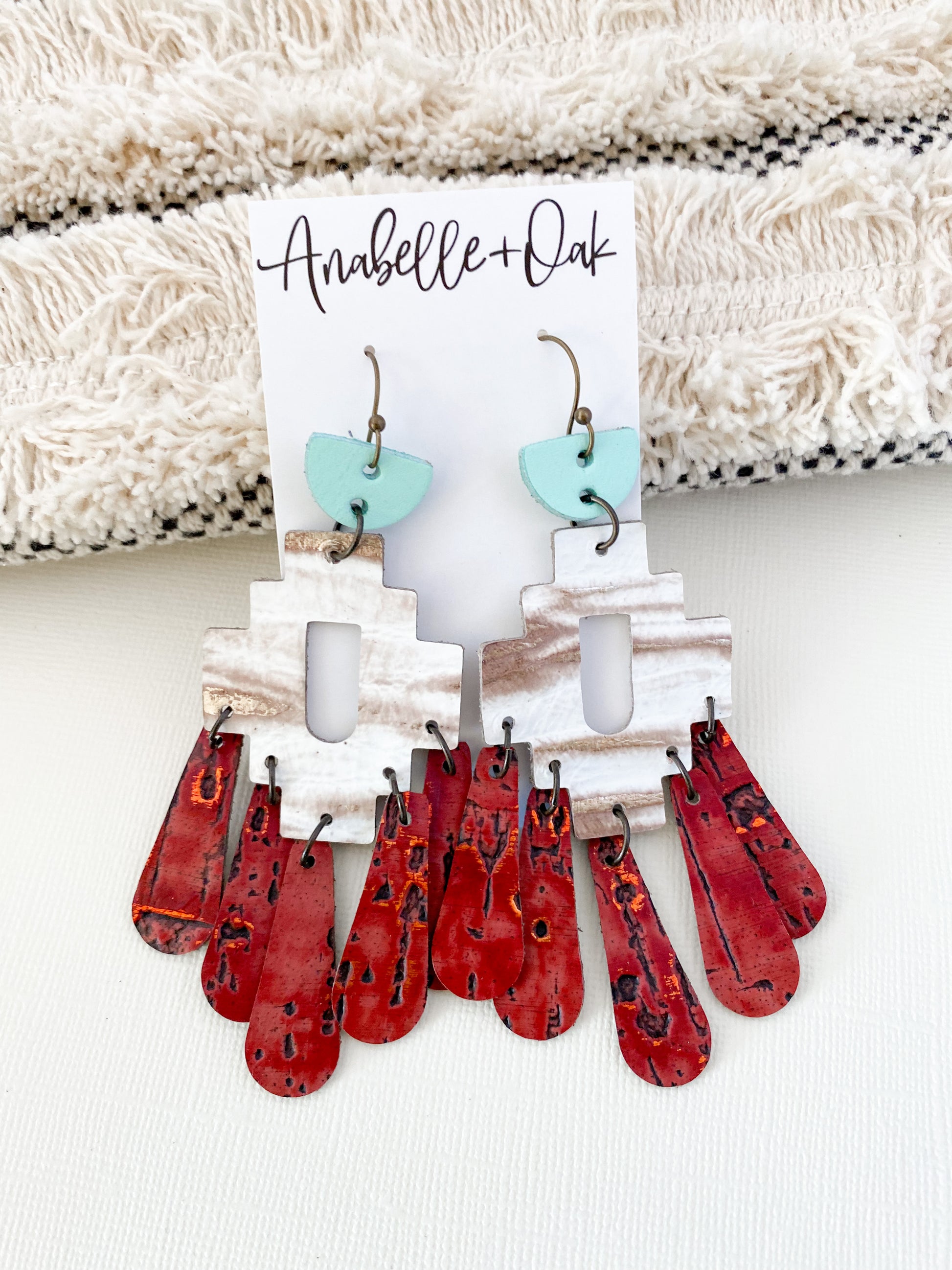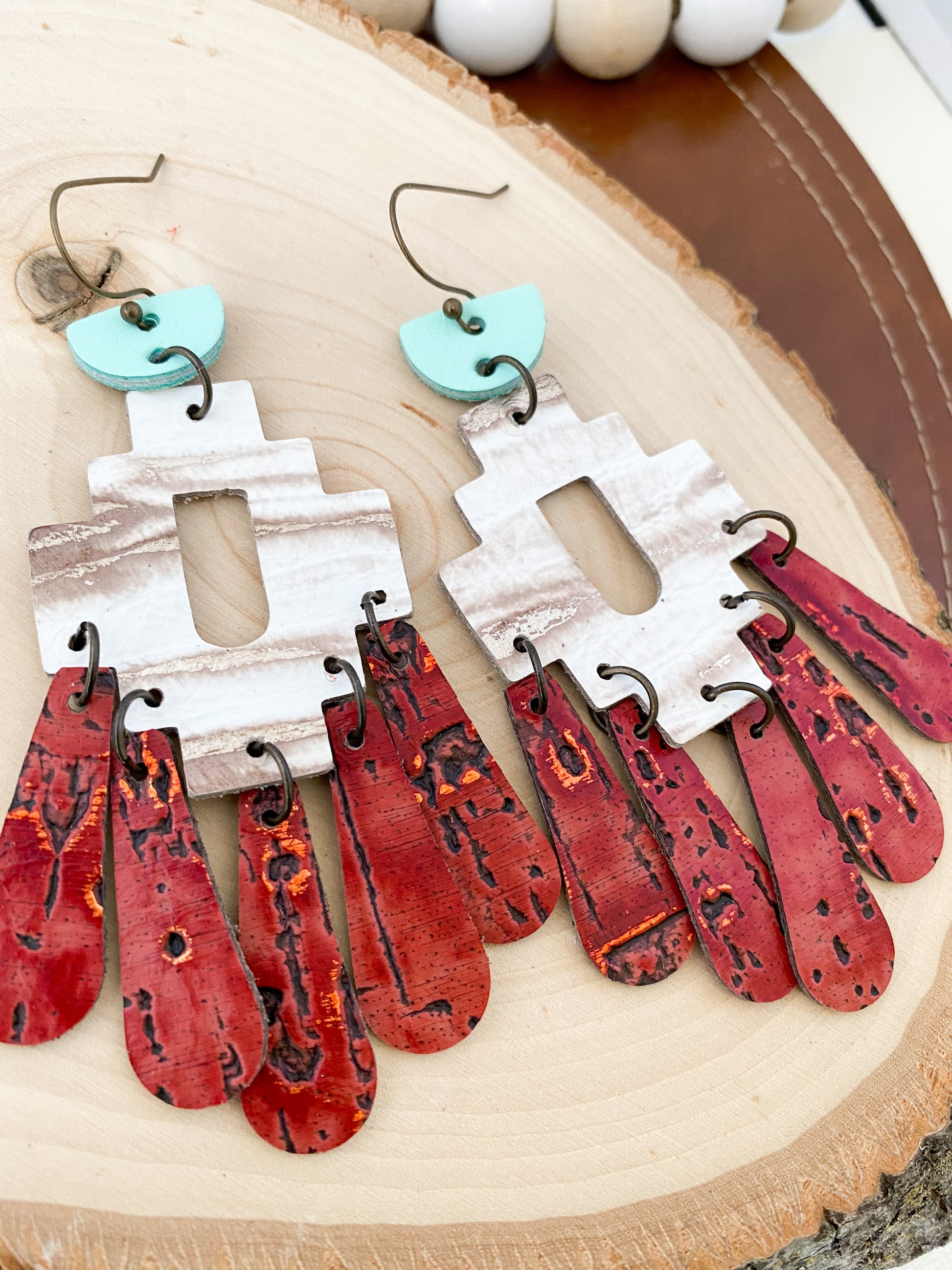 Y'all!! These earrings!! They are SO pretty! And will go with SO MUCH in your closet! Creamy white, bronze, minty turquoise, and distressed shimmery red...gorgeous.