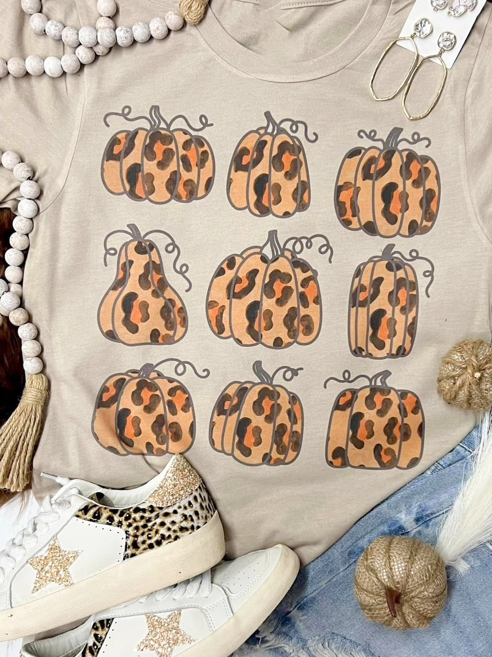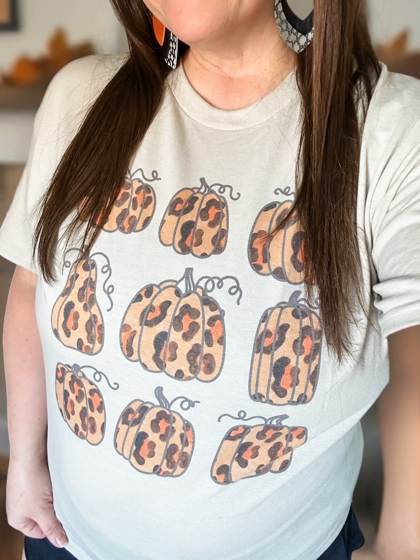 leopard pumpkin tee, fall graphic tee, neutral fall shirt, spotted orchard tee, soft style pumpkin shirt, leopard print fall shirt, boutique fall tee, cozy autumn tee, lightweight pumpkin tee, neutral graphic tee, unisex fall shirt, weekend graphic tee, pumpkin patch shirt, friday night lights tee, porch sitting fall shirt, trendy leopard print tee, fall layering tee, casual fall outfit shirt, boutique pumpkin print tee