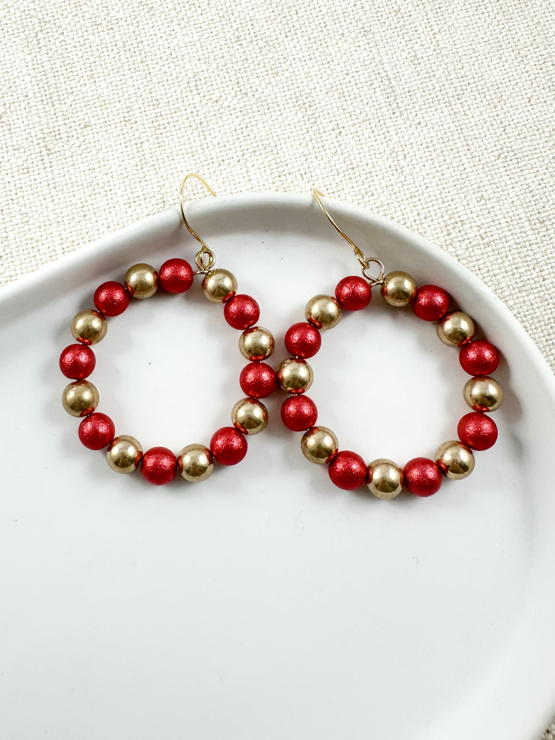 red and gold hoop earrings, holiday beaded earrings, Christmas game day earrings, red and gold statement earrings, beaded holiday hoop earrings, boutique festive earrings, Tinsel & Bauble Earrings, Christmas ornament inspired earrings, bold holiday earrings for women, earrings for holiday parties, holiday earrings under $30, spirited holiday accessories, earrings for tailgate outfits, red and gold game day earrings, football season earrings, earrings for December outfits, festive hoop earrings, boutique Christmas jewelry, fun teacher holiday earrings, Secret Santa gift earrings, holiday earrings for fans, red and gold beaded hoops, earrings for holiday dress-up days, versatile holiday earrings, game day fashion earrings, holiday spirit week earrings, earrings for fans and festivities, stocking stuffer earrings