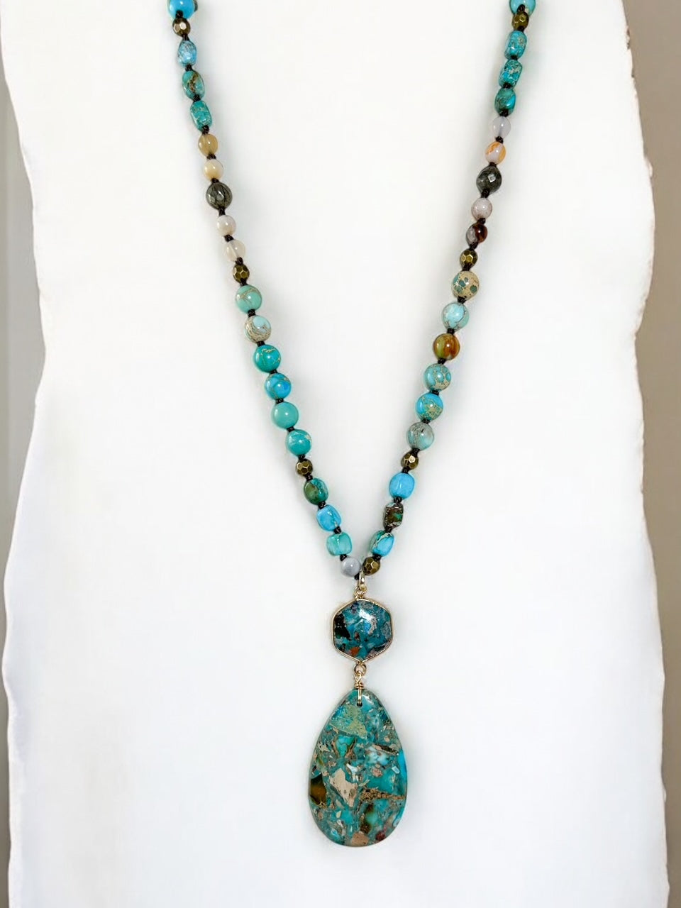 turquoise stone necklace, long turquoise necklace, boho turquoise jewelry, southwest statement necklace, turquoise pendant necklace, beaded gemstone necklace, western style necklace, natural stone jewelry, earthy turquoise necklace, handmade turquoise jewelry, 35 inch turquoise necklace, slip-on beaded necklace, rustic turquoise pendant, bohemian long necklace, turquoise layering necklace, festival jewelry, southwest jewelry style, boho chic necklace, turquoise statement piece, unique stone necklace, natural gemstone beaded necklace, western chic jewelry, gift for turquoise lovers, southwestern fashion, long boho beaded necklace, organic stone jewelry, desert-inspired necklace, blue stone pendant necklace, handmade western jewelry, rustic gemstone necklace, artisanal beaded necklace, earthy boho jewelry, turquoise fashion jewelry, southwestern cowgirl necklace, rustic luxe accessories, turquoise jewelry gift, casual everyday necklace, free-spirited jewelry, western style outfit accessory, turquoise and gold jewelry, genuine stone jewelry, handmade natural stone necklace, summer festival necklace, unique artisan necklace