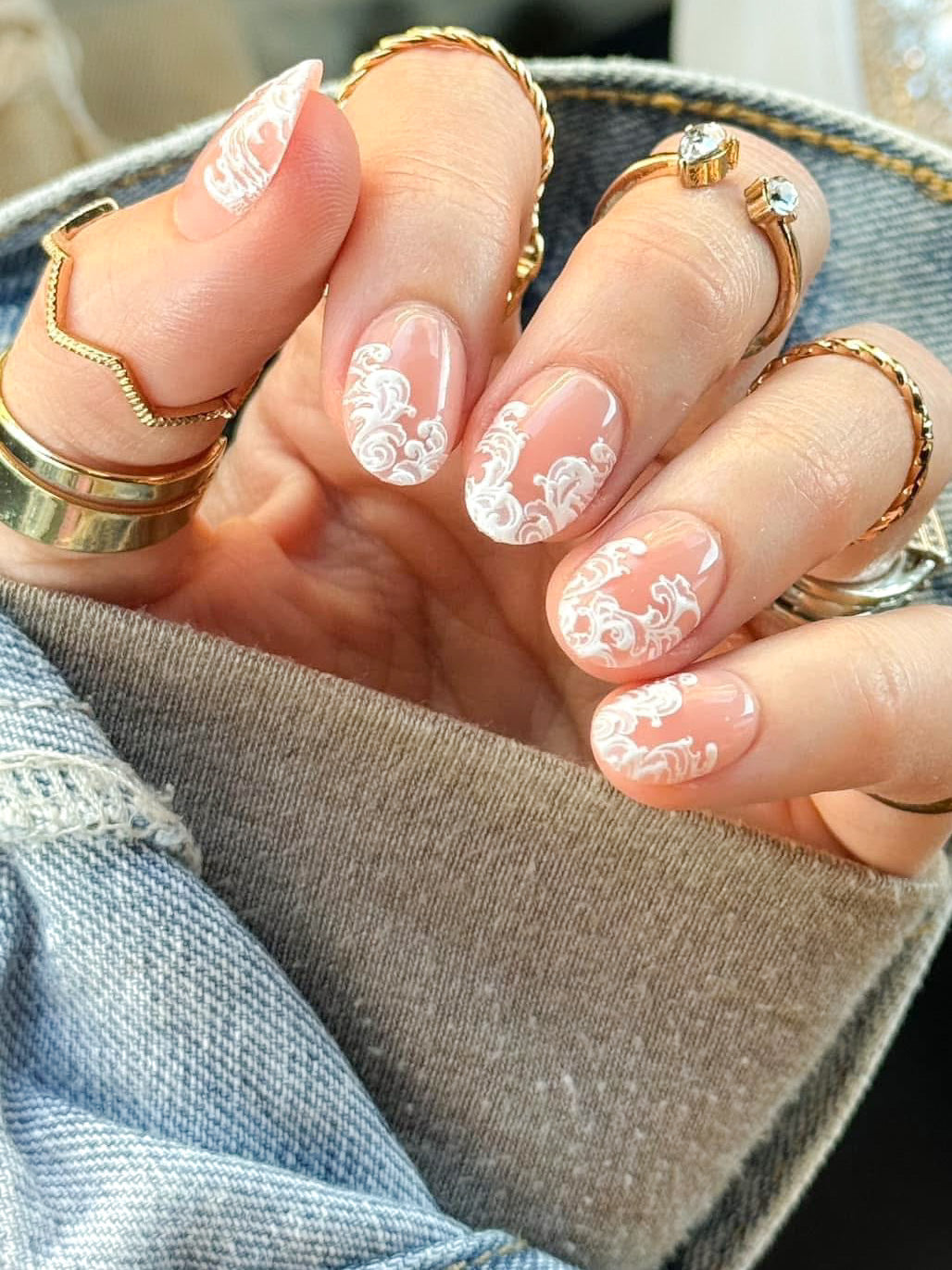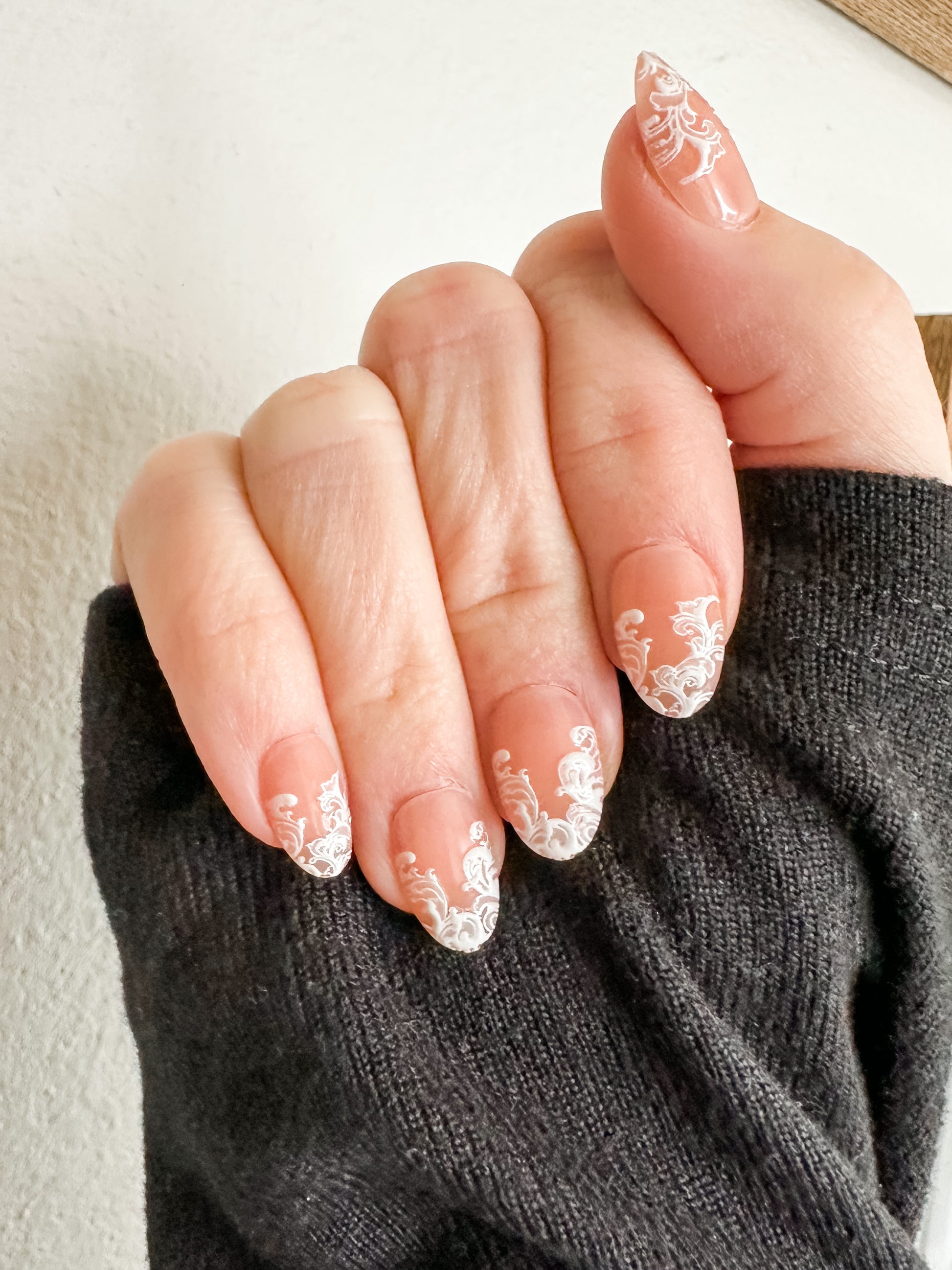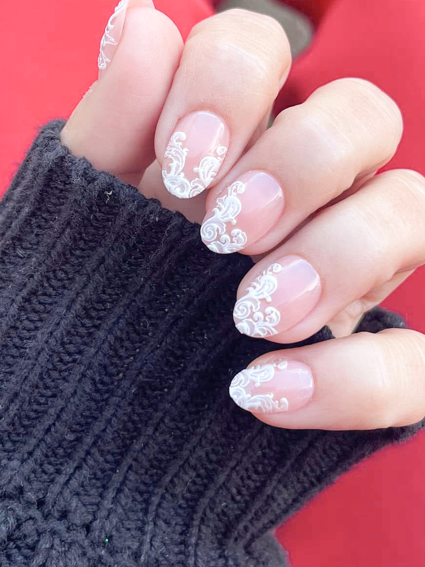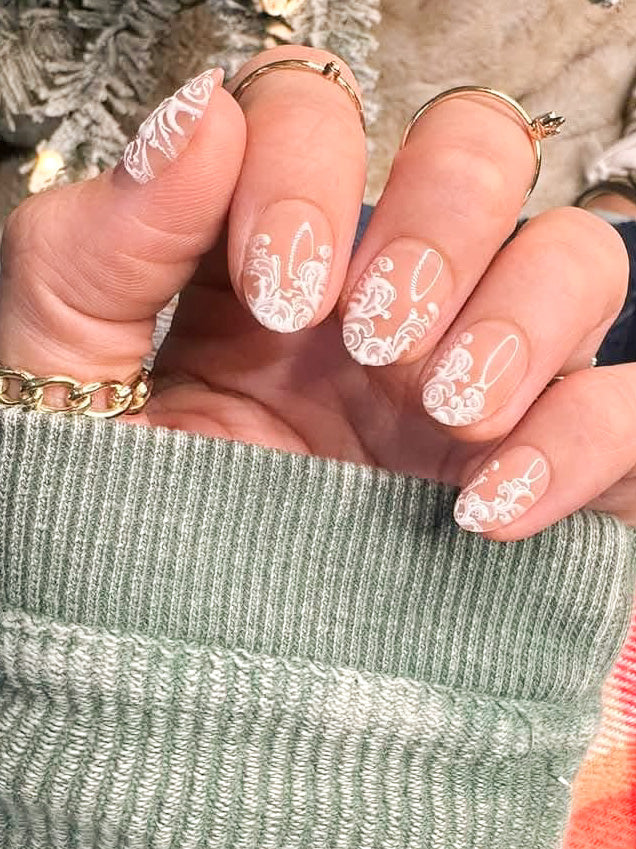 Color: Nude with white lace design