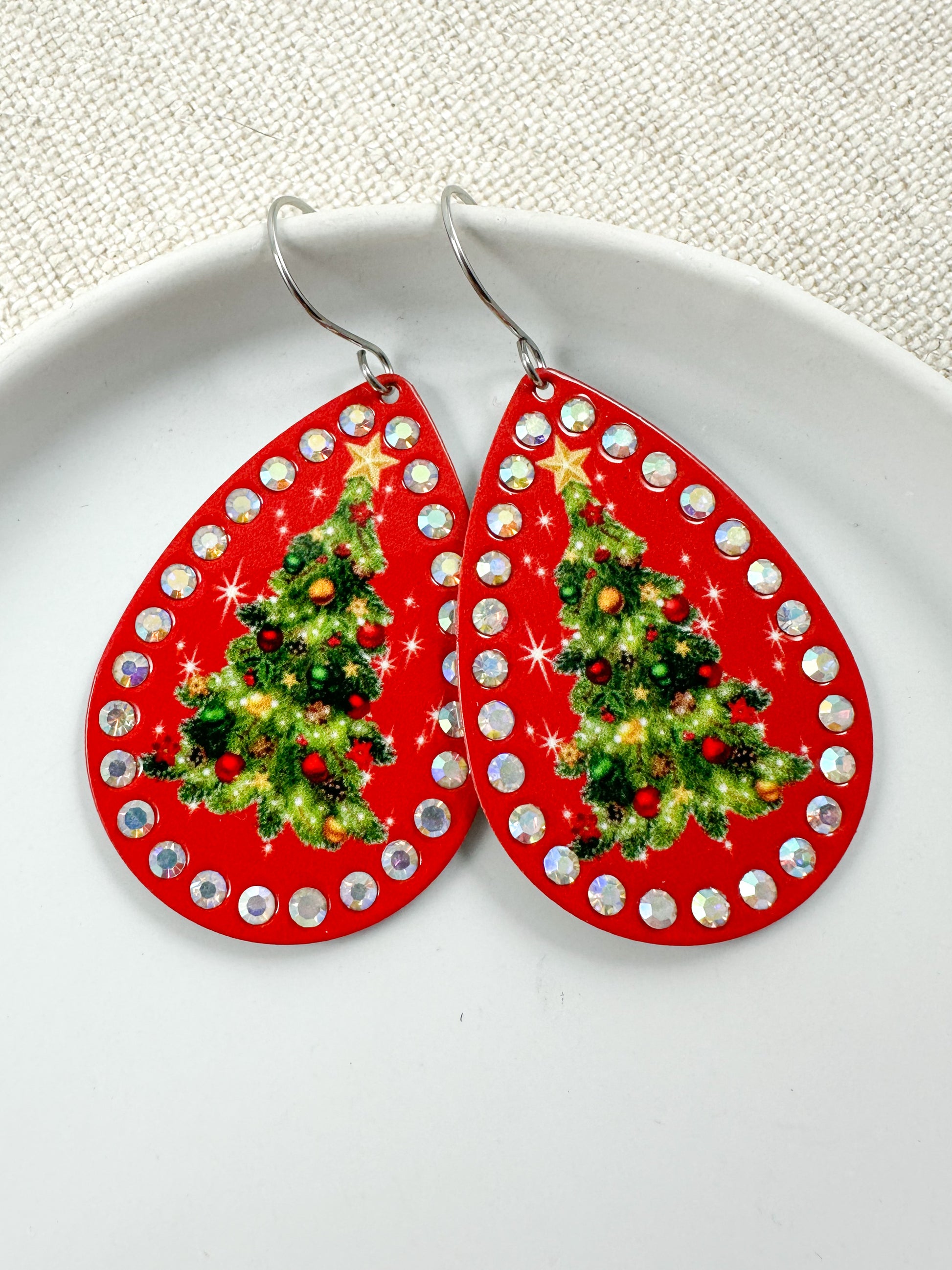 The Vintage Christmas Glow Earrings are giving full-on retro sparkle in the best way possible. Bright red teardrops? Check. Rhinestone shimmer that catches every twinkle light? Double check. That classic Christmas tree print straight out of your childhood memories? We’re swooning.