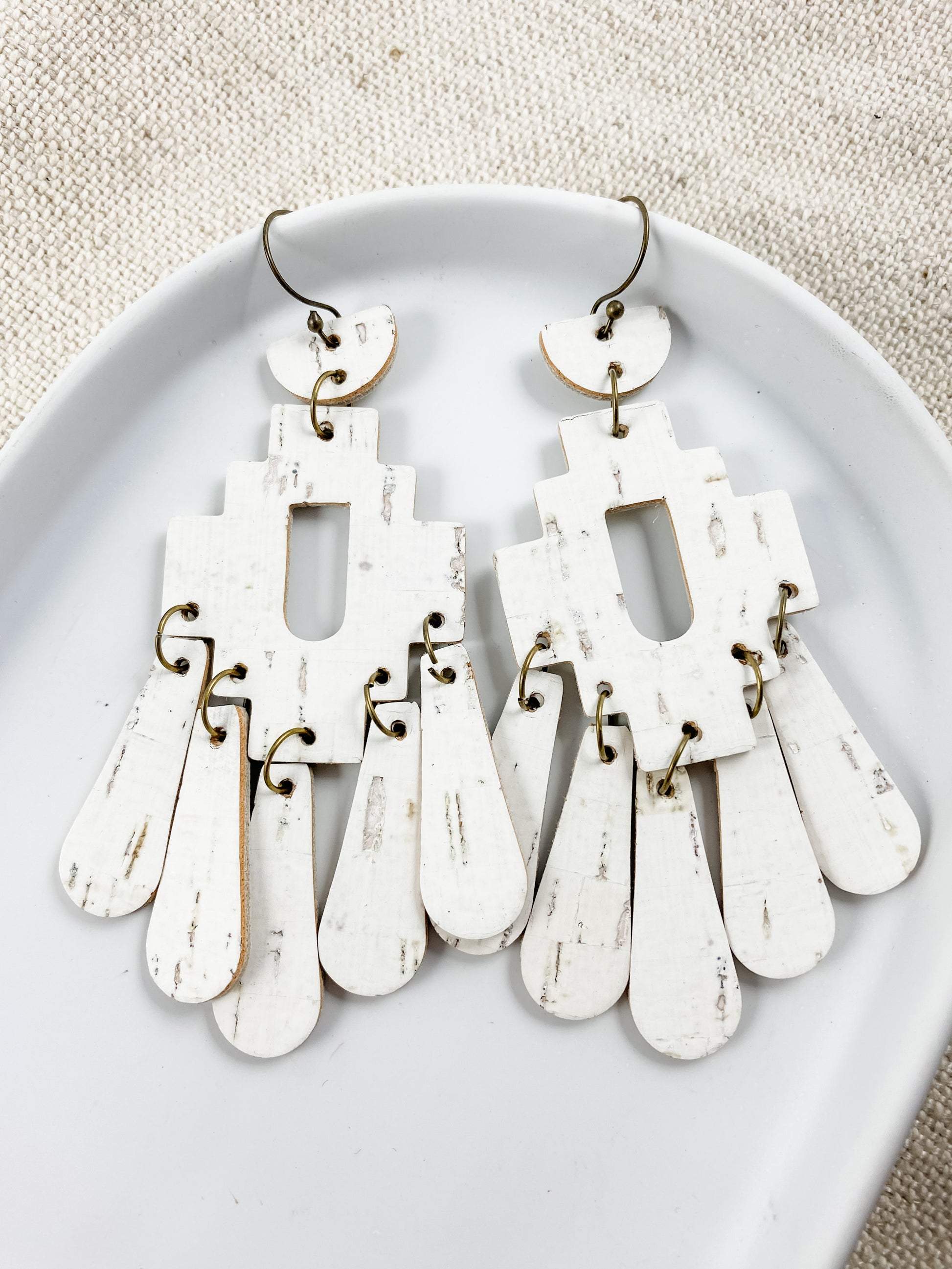 Looking for a standout accessory to add to your jewelry collection? Look no further than our White Mesa Earrings! These handmade statement earrings are crafted from creamy white birch cork and genuine leather and measure a stunning 3.5" long, making them a real head-turner.