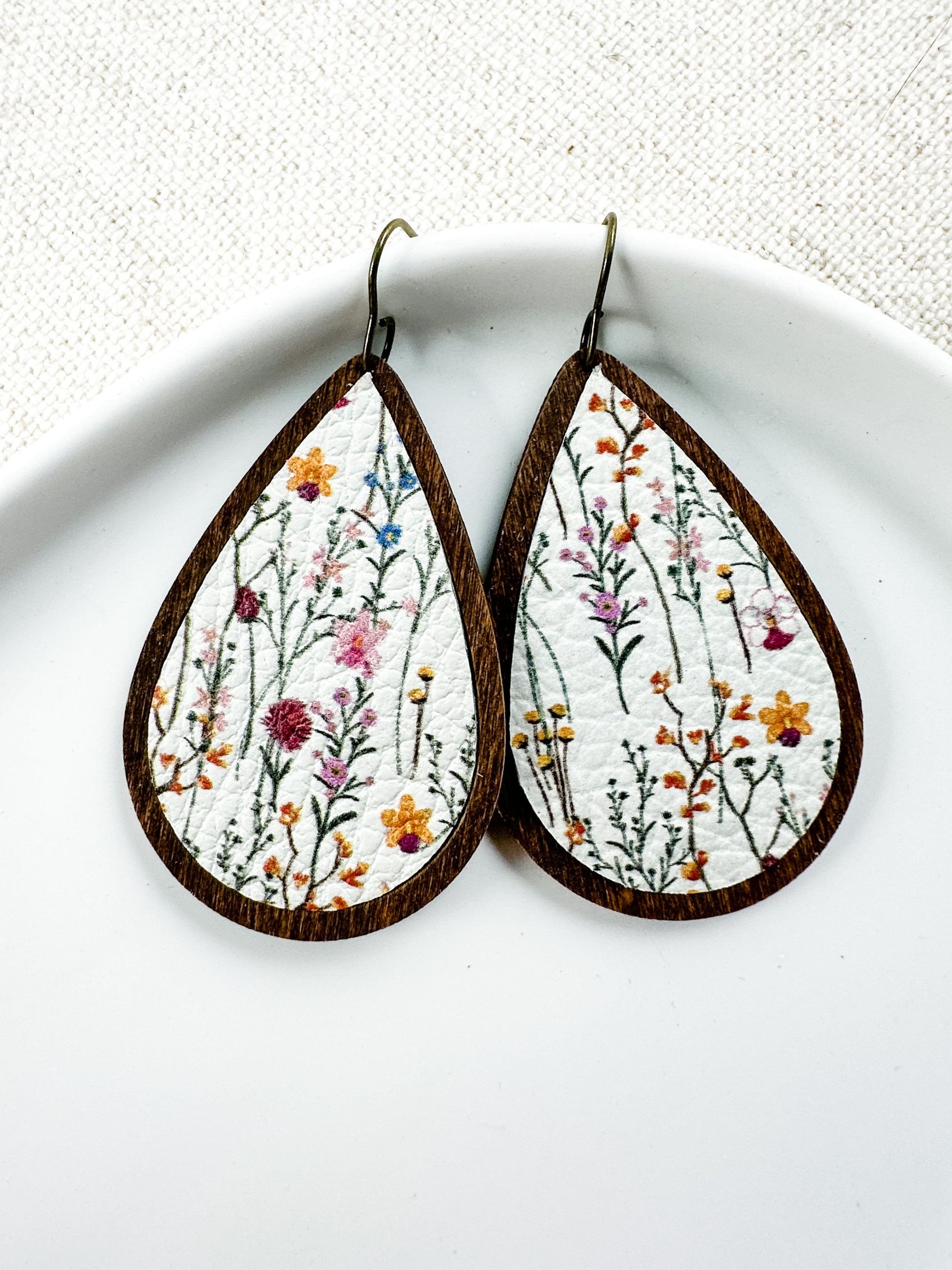 Dainty wildflowers and rustic wood are the perfect pairing! These earrings are so beautiful--you will wear them a ton.