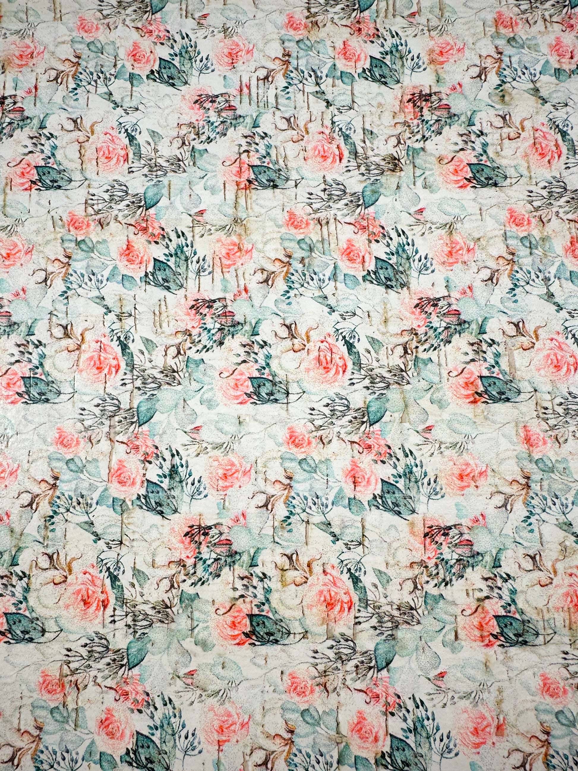 Willow & Rose is a lightweight cork backed with genuine leather, featuring delicate coral roses, pale greenery, and subtle vines dancing across a creamy background. It feels like a morning walk through a blooming garden—peaceful, feminine, and quietly stunning. Whether you're dressing up for brunch or keeping it casual with a tee, this cork brings all the earthy elegance.