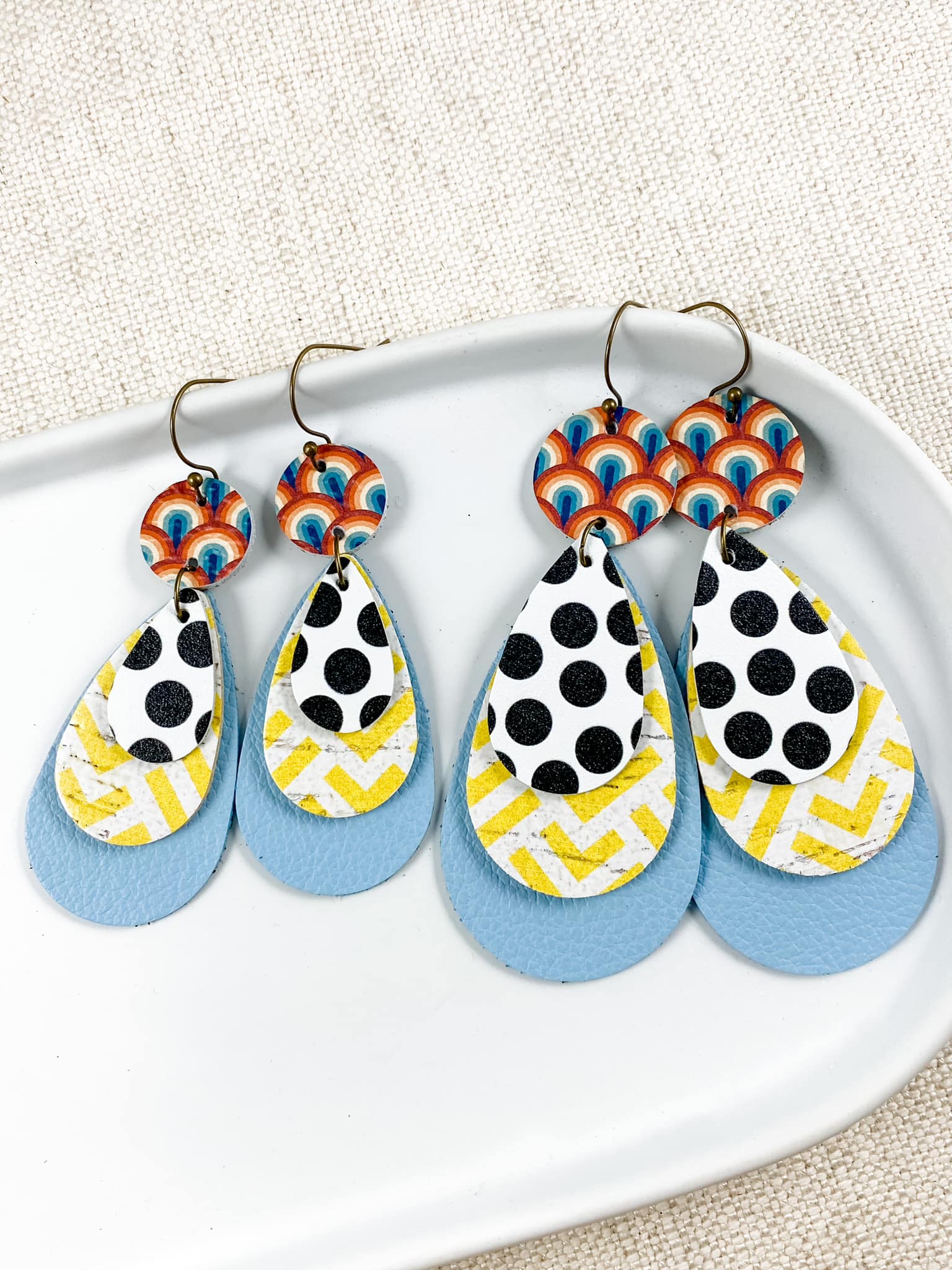 Drumroll please.....check out our Witty Banter Earrings!! They are handmade layered teardrops crafted from genuine leather and cork. These earrings are ah-mazing. They come in 2 sizes, so you can pick your perfect fit. The smalls are 2.5", while the larges are a fab 3.25". It's all about finding that perfect match for your style!