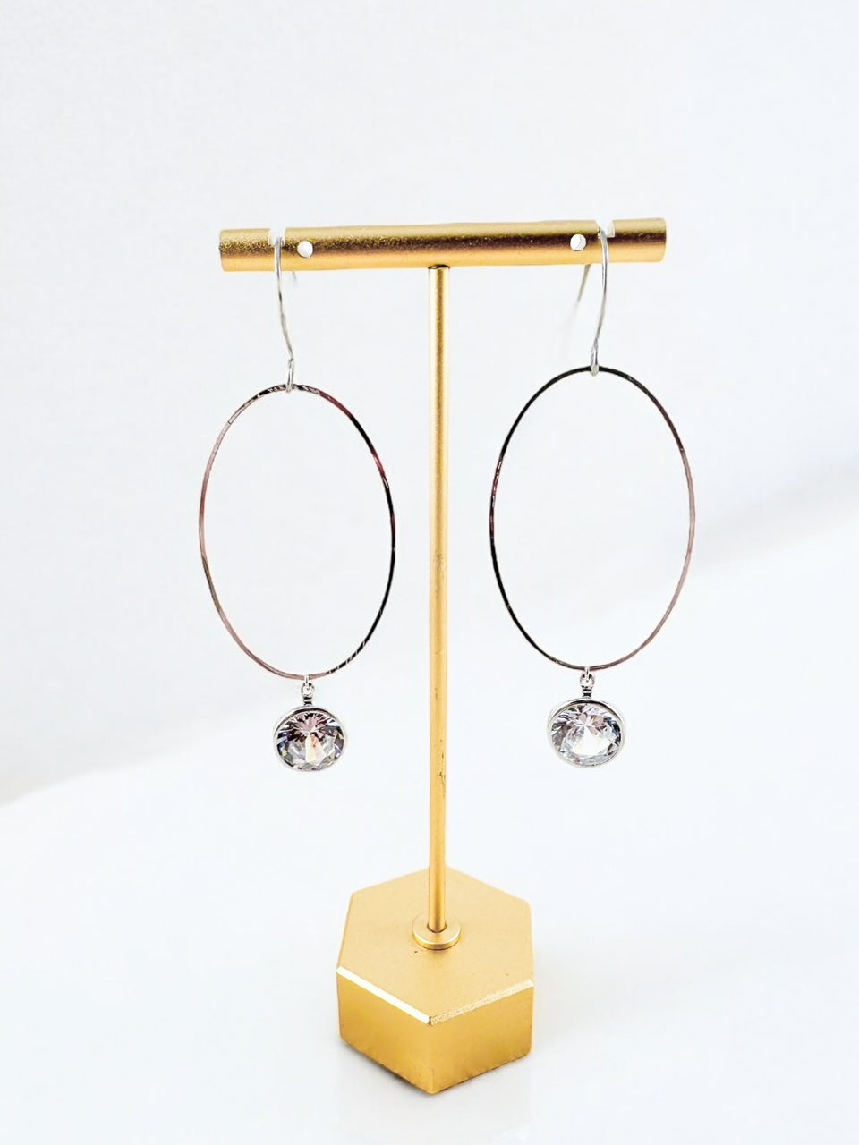 silver hoop drop earrings, crystal drop earrings, silver open hoop earrings, silver dangle earrings, lightweight silver earrings, minimalist silver earrings, bezel set crystal earrings, clear stone drop earrings, modern silver earrings for women, delicate silver dangles, silver earrings for everyday wear, dainty hoop earrings, silver statement earrings, elegant silver earrings, boutique silver earrings, fashion jewelry under $30, silver earrings for weddings, silver earrings for bridesmaids, silver jewelry for formal events, gift for her silver earrings, hypoallergenic silver earrings, earrings for sensitive ears, silver earrings for work and weekend, silver dangle earrings with crystals, crystal drop hoops, 2.5 inch earrings, lightweight earrings for women, subtle sparkle earrings, southern boutique accessories, stylish silver earrings, silver earrings for cocktail parties, trendy silver jewelry, feminine silver hoop earrings